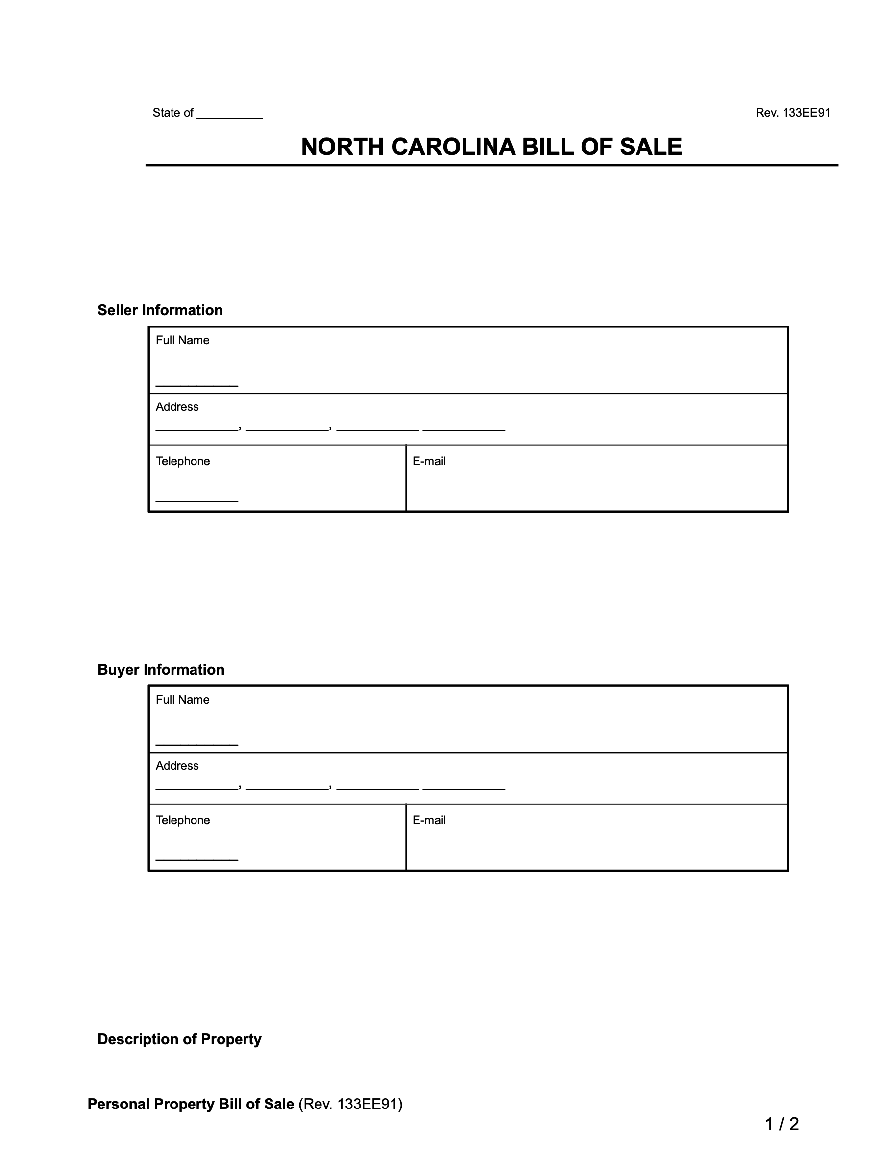 Free North Carolina Bill Of Sale Forms PDF U0026 Word