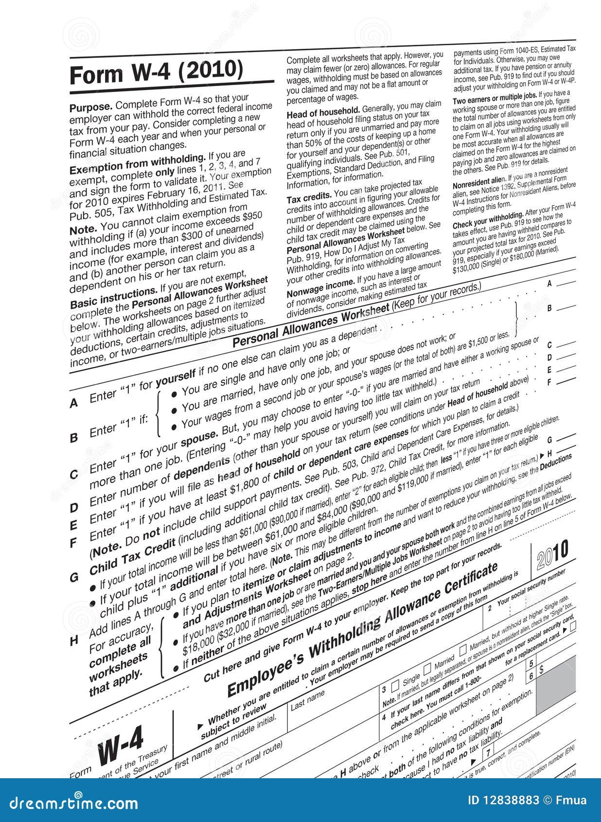 2010 Form W 4 Stock Image Image Of Allowance American 12838883