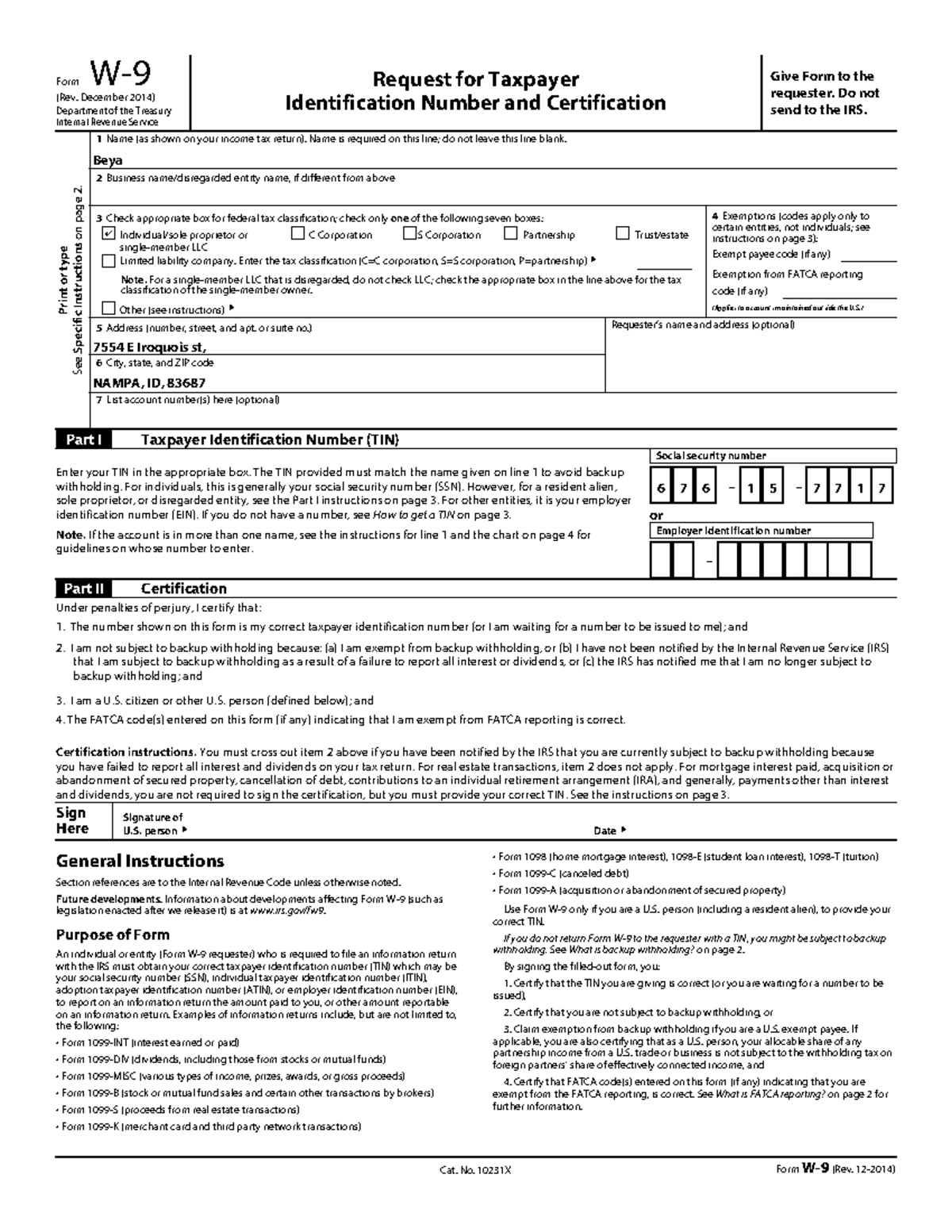 W9 Everything Needed Form W Rev December 2014 Department Of The Treasury Internal Revenue Studocu
