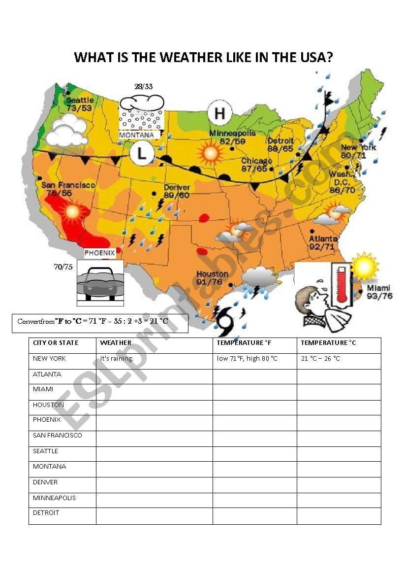WEATHER IN USA ESL Worksheet By Matejamotorola Worksheets Library