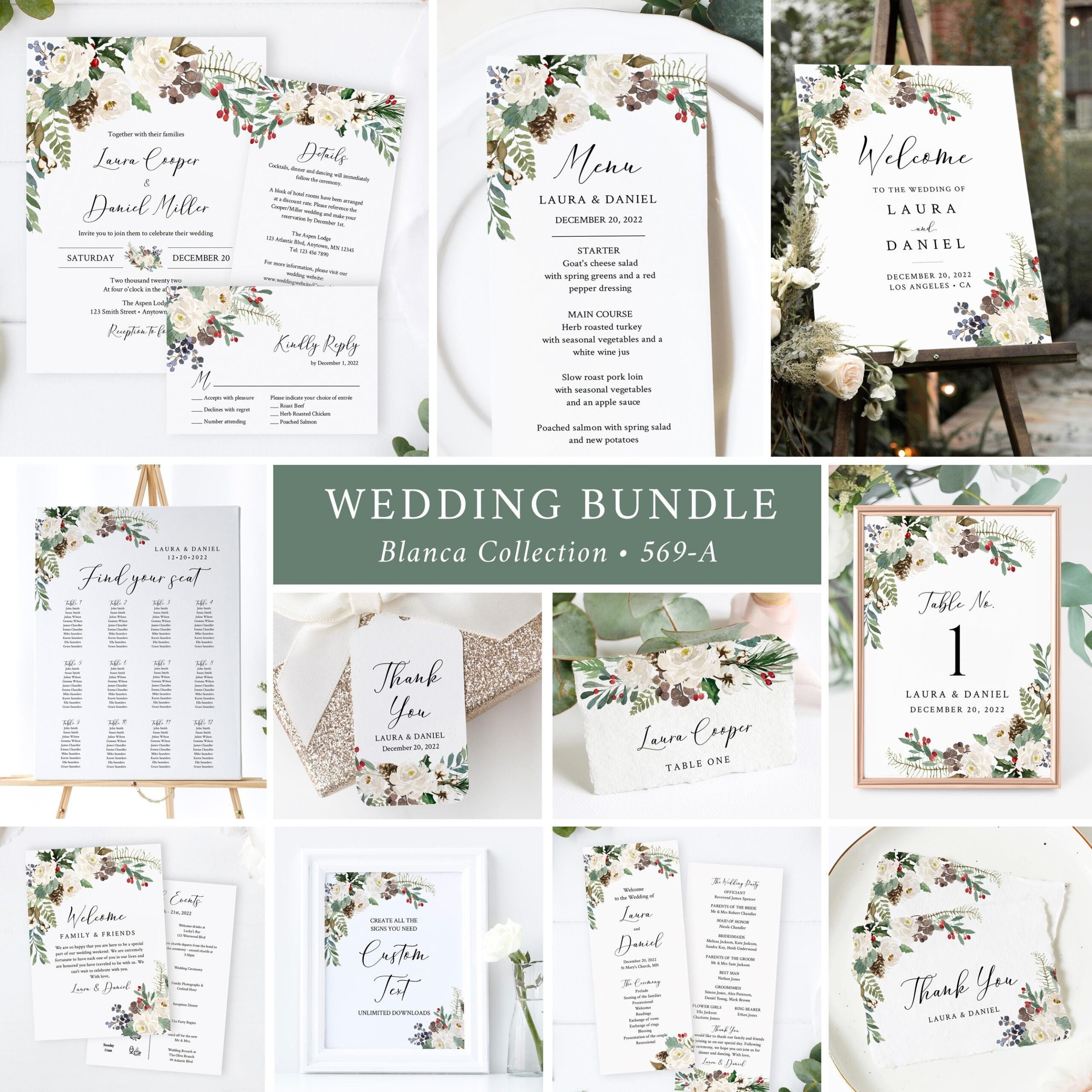 Rustic Wedding Set Printable Winter Wedding Invitation Pack