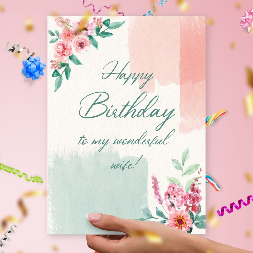 Happy Birthday Card For My Wonderful Wife Template Editable Online