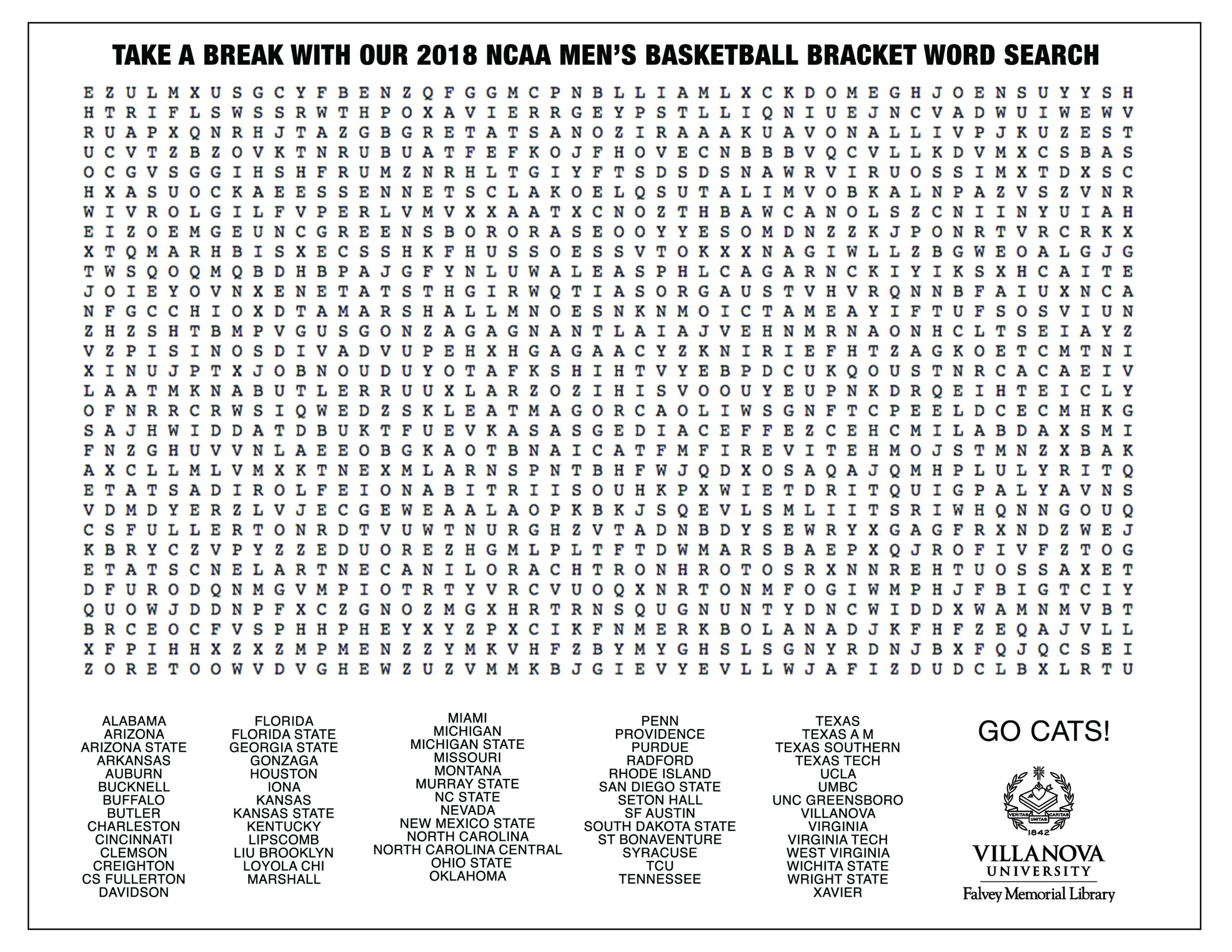 Falvey Library Take A Break With Our 2018 NCAA Tournament Bracket Word Search