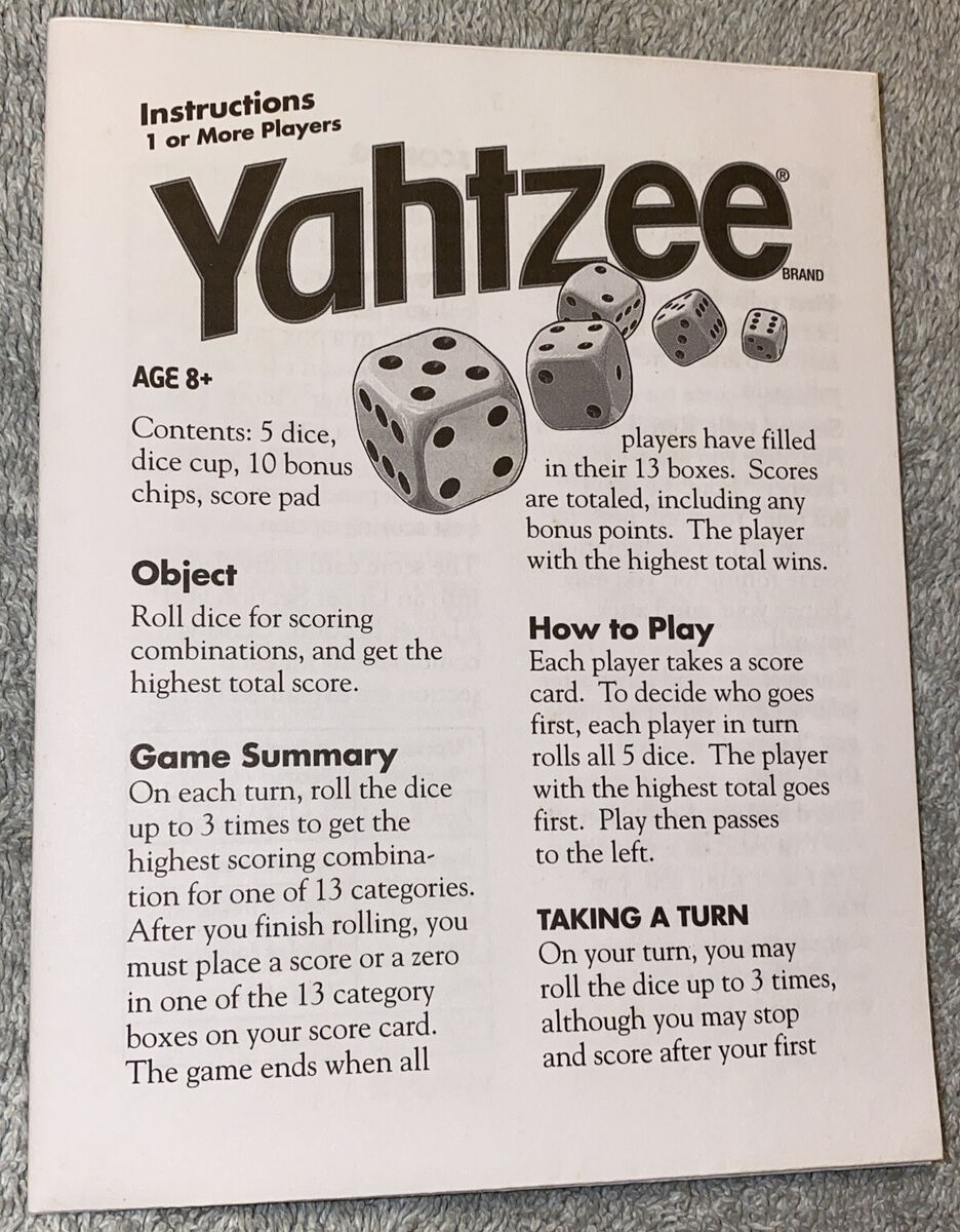 2005 Yahtzee Board Game Replacement Instructions