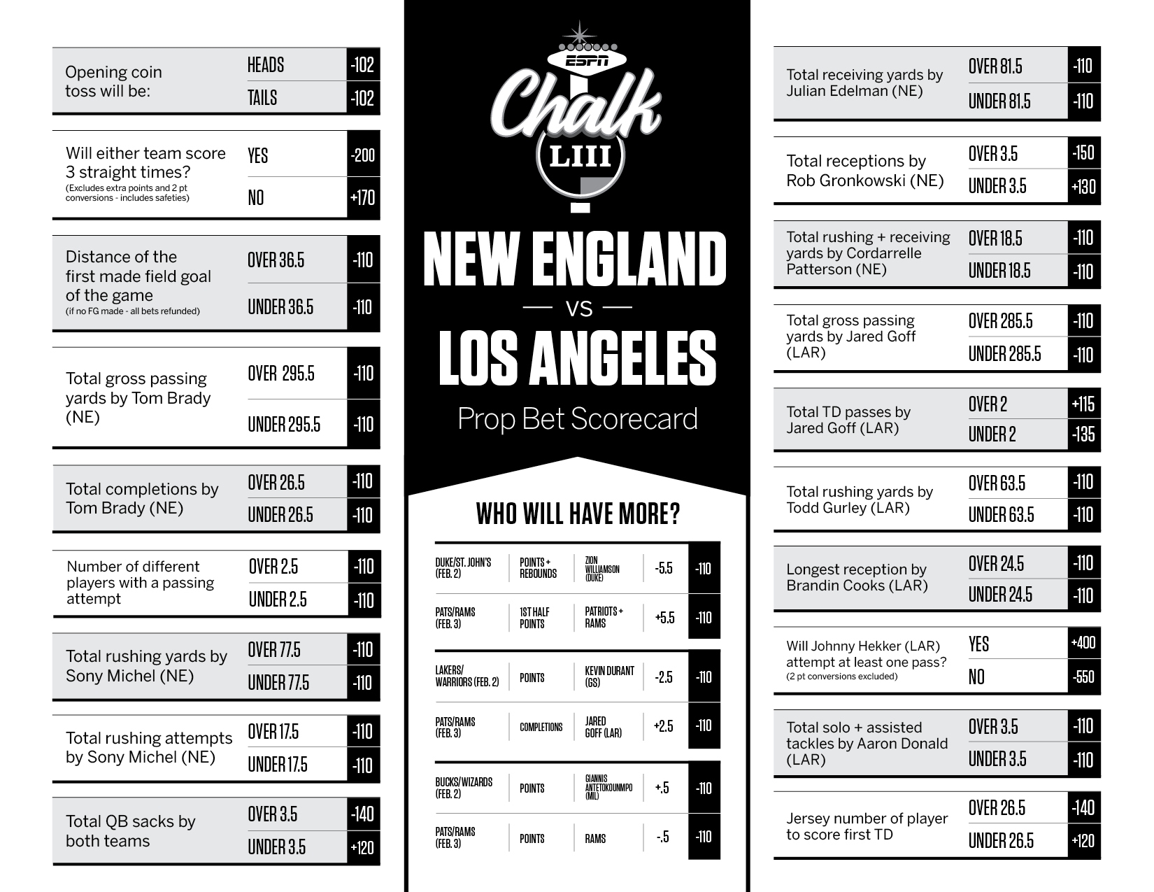 Super Bowl LIII Prop Bets Print This Sheet And Play Along The