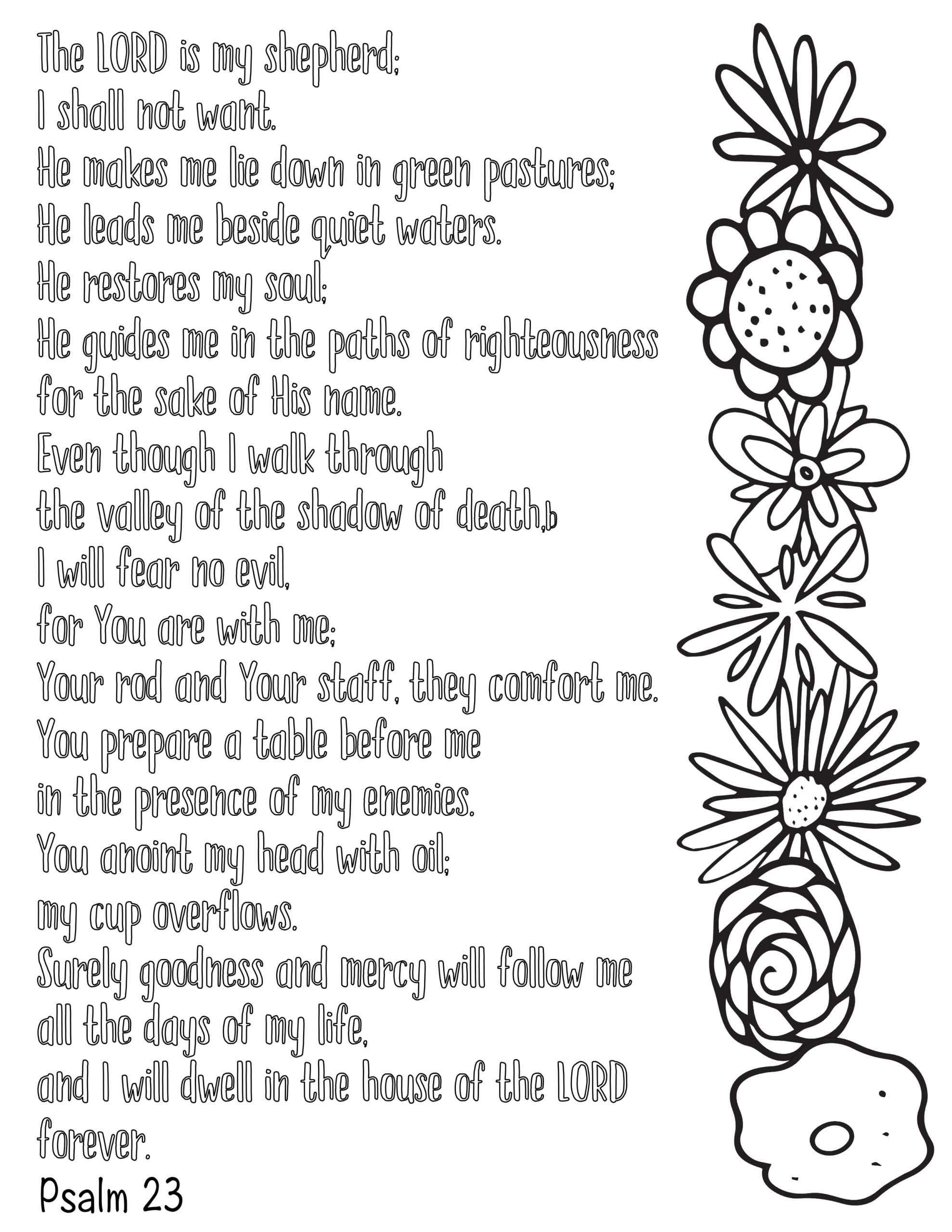 Psalm 23 Coloring Page In Three Sizes 8 5X11 8X10 Suitable For Framing 6X8 For Bible Journaling Tip in