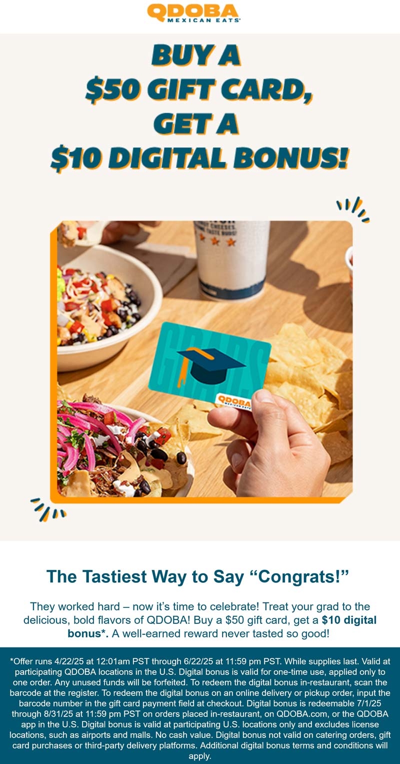 10 Card Free With 50 Card At Qdoba Qdoba August 2025 Coupons