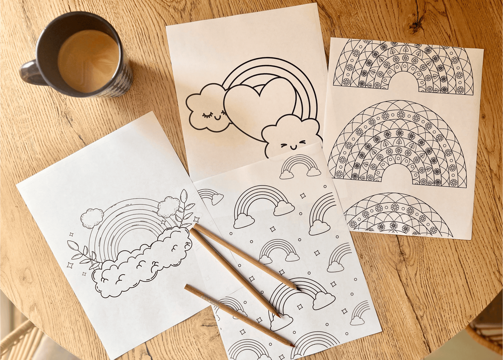 Print out several copies of different rainbow coloring pages to keep your child entertained for hours. You can even turn it into a fun family activity by coloring together and displaying the finished masterpieces around the house.