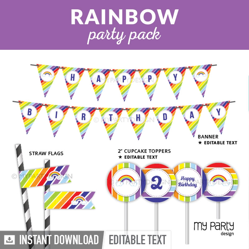Our collection includes everything you need to deck out your party space in a rainbow of colors. From cupcake toppers and favor tags to photo booth props and gift bags, we’ve got all the essentials covered. Simply download, print, and get ready to party!