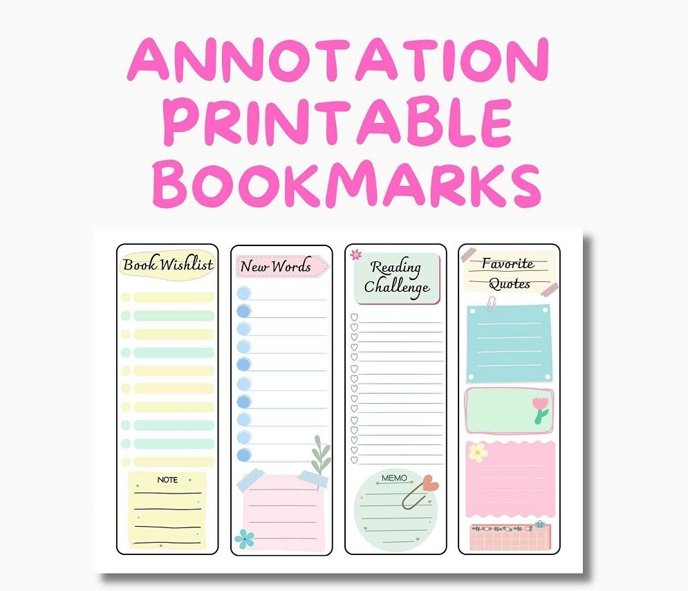 8 Printable Annotation Bookmarks PDF Book Wishlist New Words Reading Challenge Favorite Quotes Printable Stationary Reader Gift Etsy