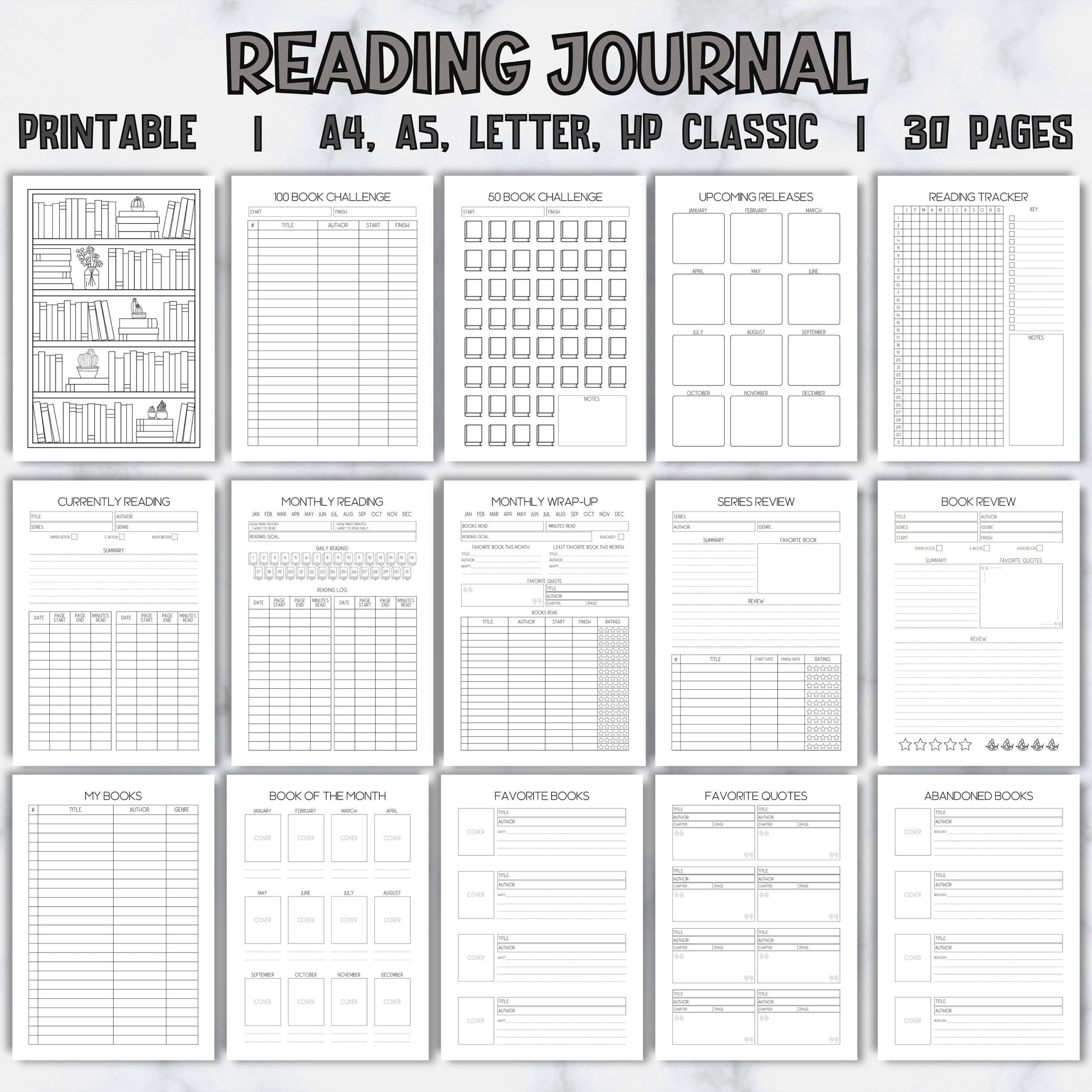 Reading Journal Printable Reading Planner Book Review Journal Book Summary Printable Bookshelf Reading Tracker Perfect For Book Club Etsy