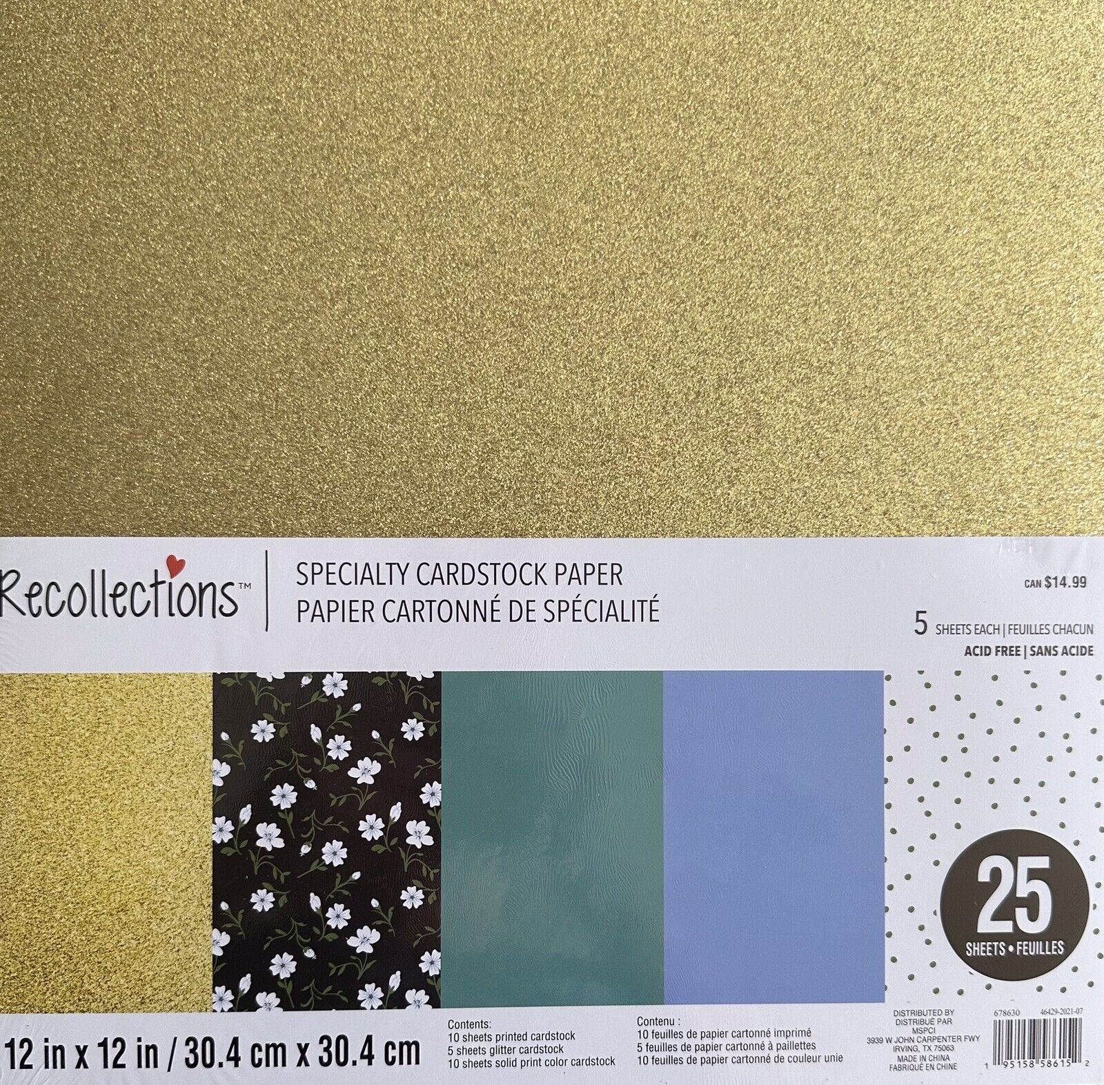 GOLD GLITTER 12X12 SCRAPBOOK CARDSTOCK PAPER PAD 25 LOT RECOLLECTIONS NEW