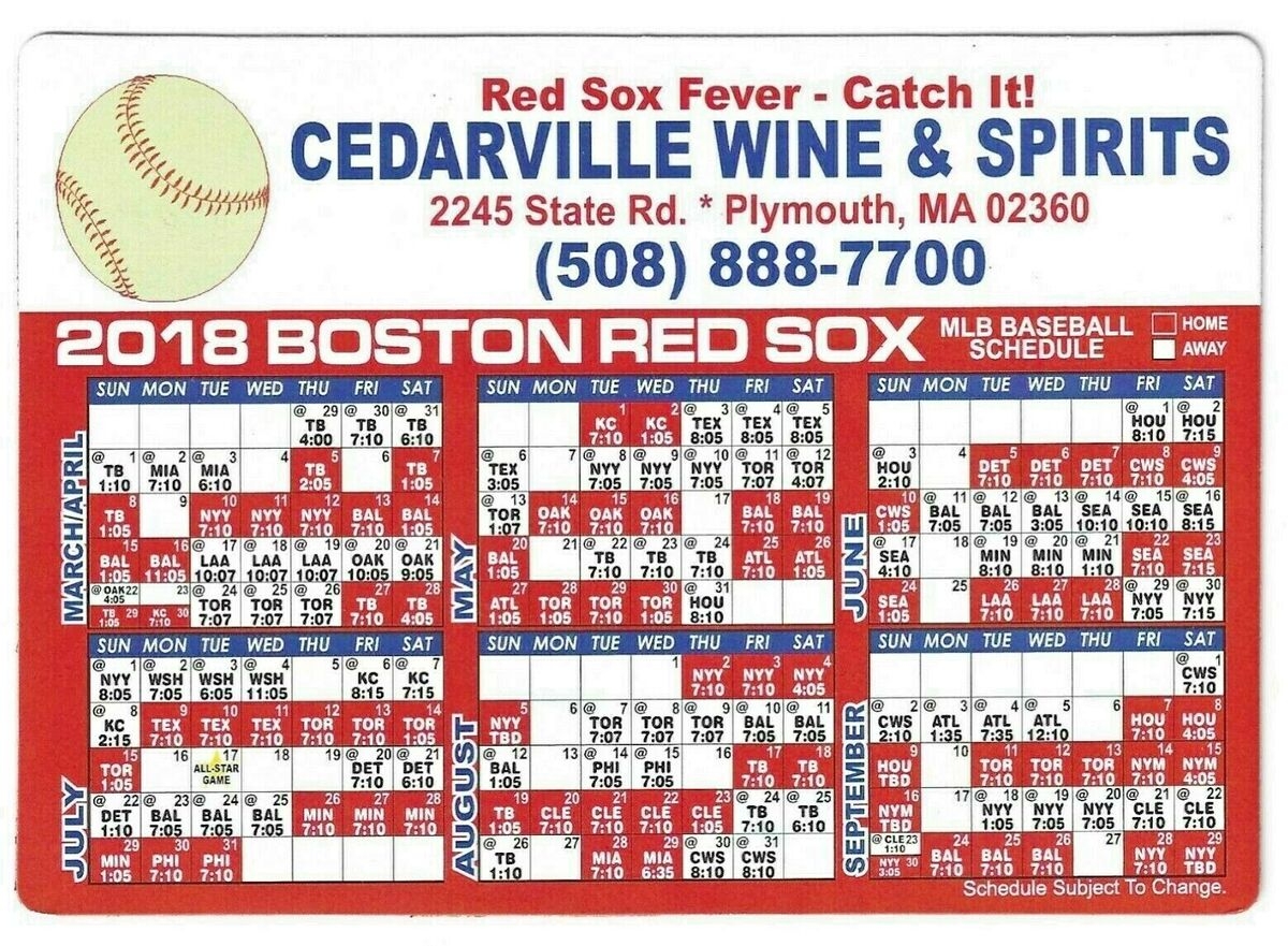 2018 Boston Red Sox Calendar Schedule Magnet Cedarville Wine U0026 Spirits 48 EBay