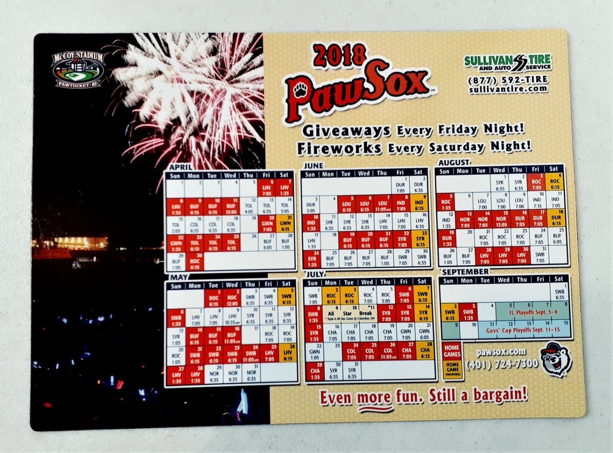 Pawtucket Red Sox 2018 Magnet Schedule McCoy Stadium 9