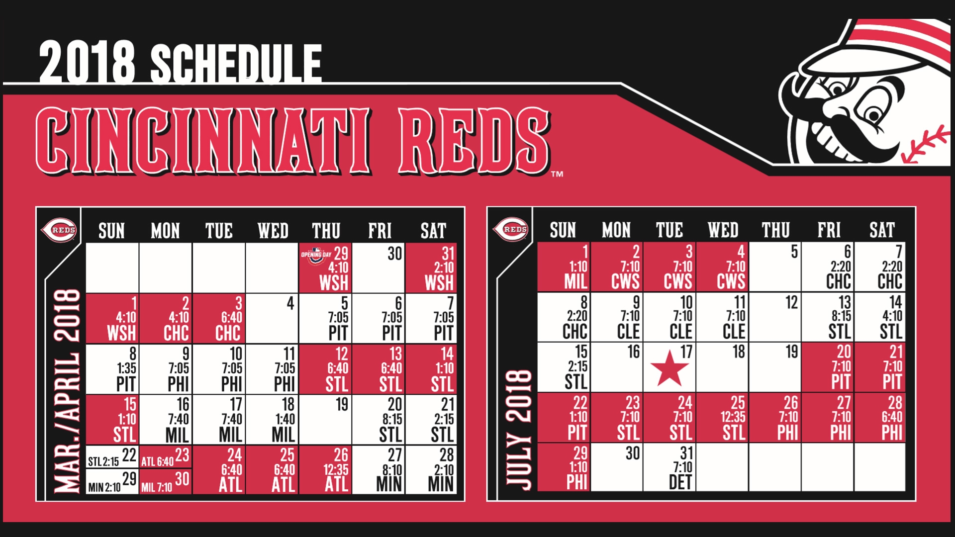 Simply click the link below to download the Reds 2018 schedule printable and start marking your calendar. It’s a convenient way to stay on top of all the action and support your favorite team every step of the way.