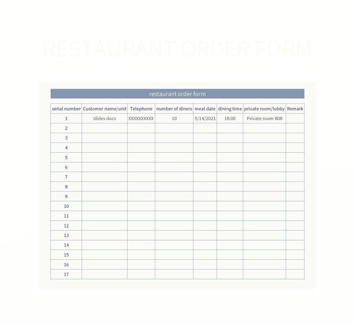 Restaurant Order Form Excel Template And Google Sheets File For Free Download Slidesdocs
