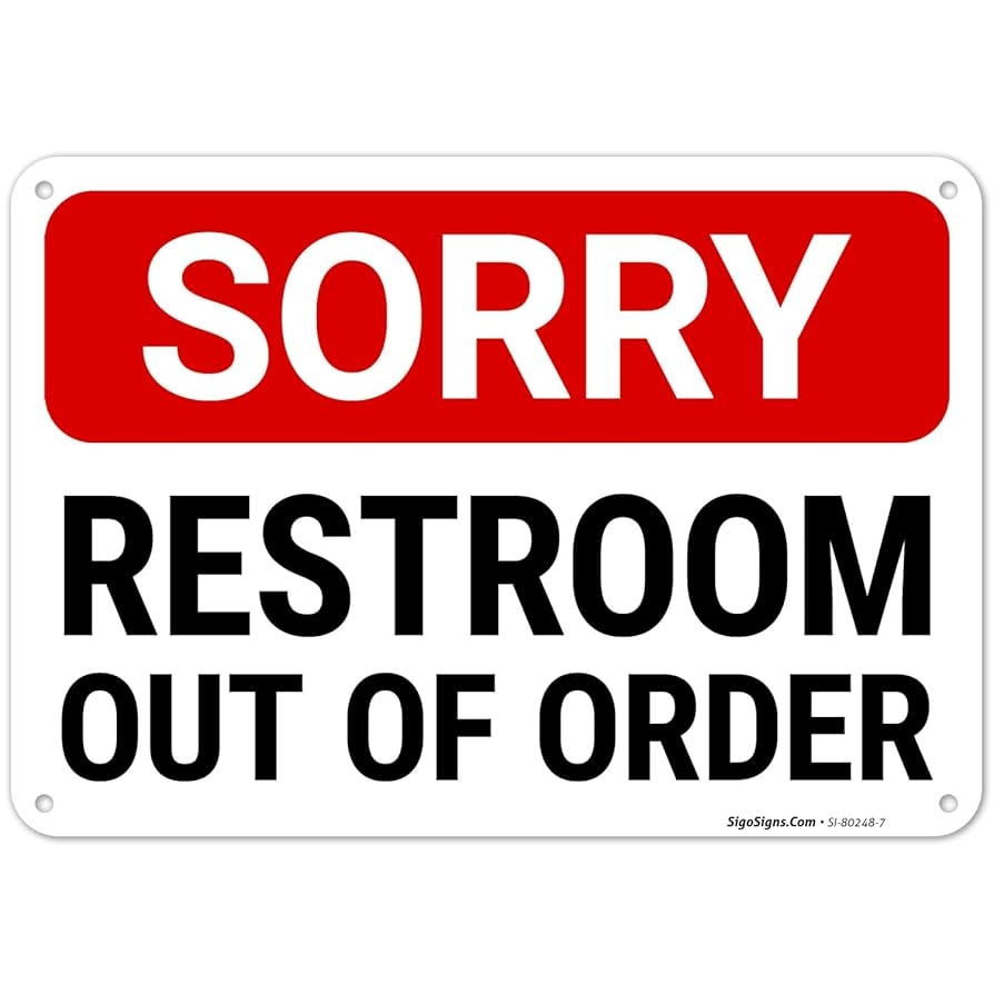 Sorry Restroom Out Of Order Sign 10×7 Inches Rust Free 040