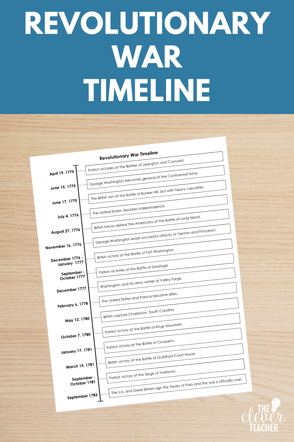 Revolutionary War Timeline For Kids Free From The Clever Teacher