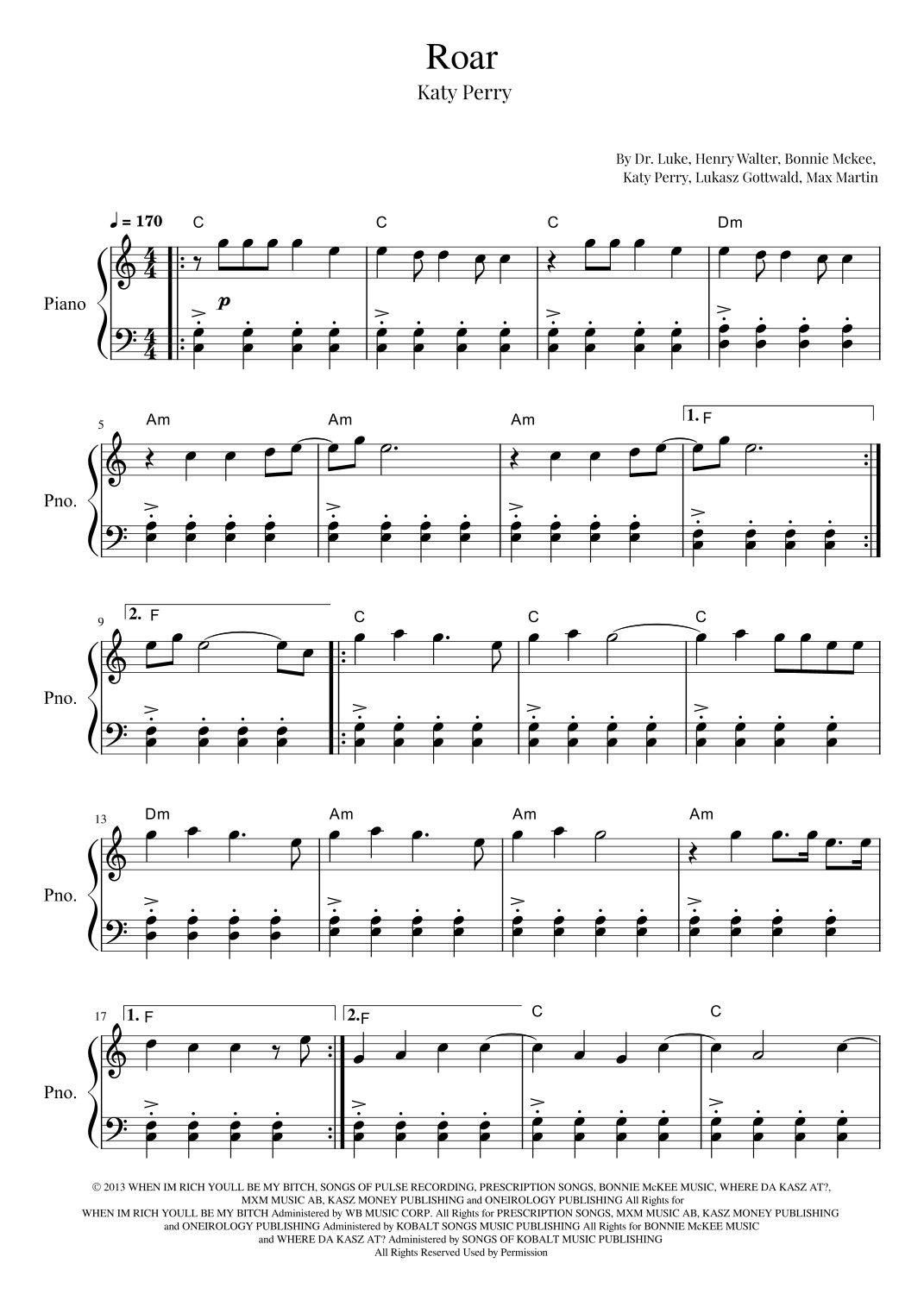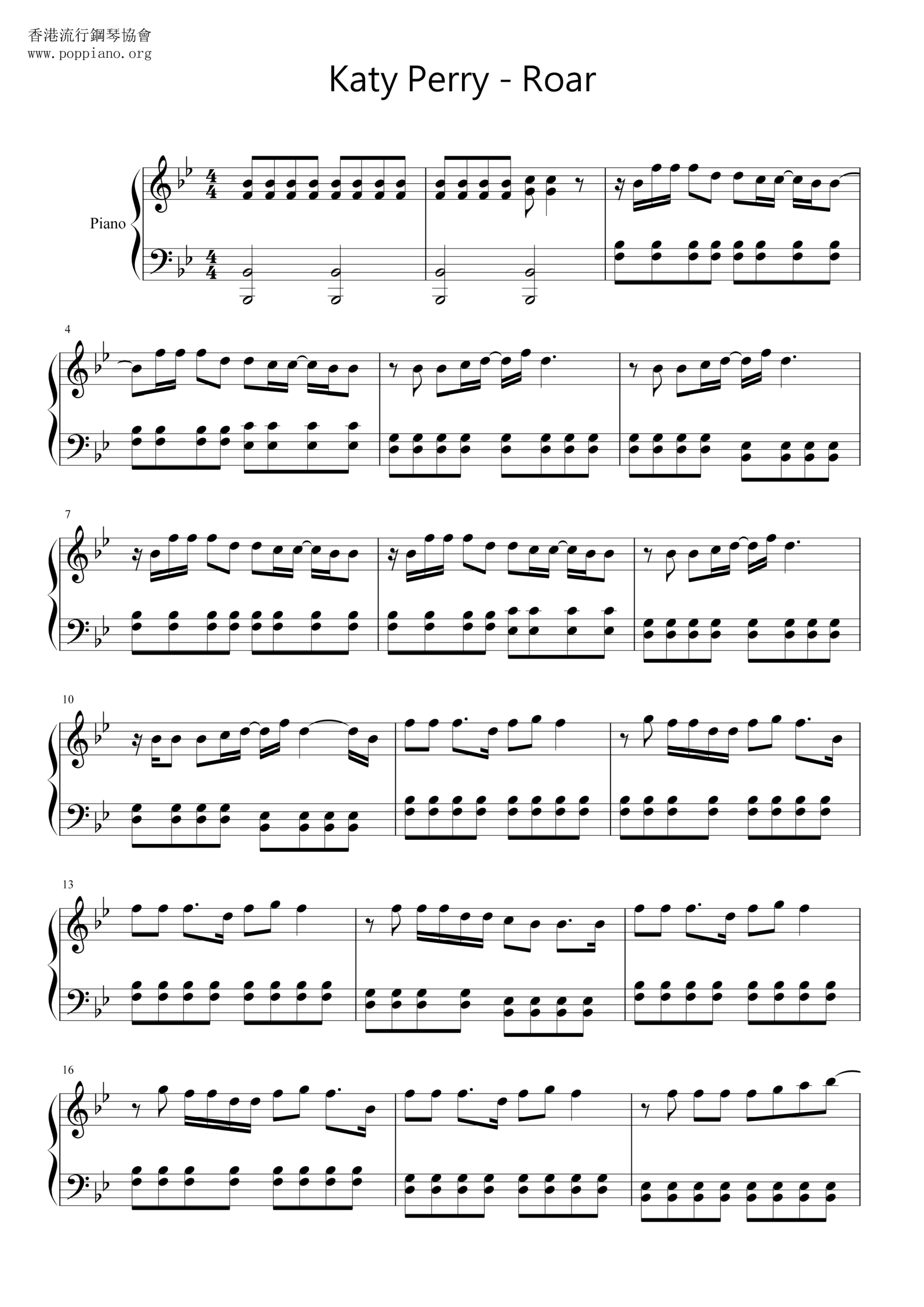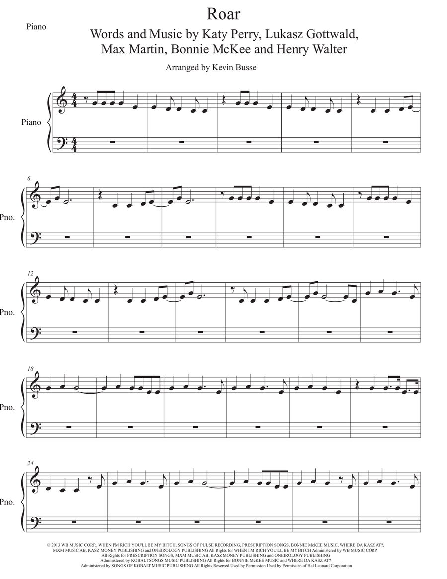 roar sheet music piano free printable