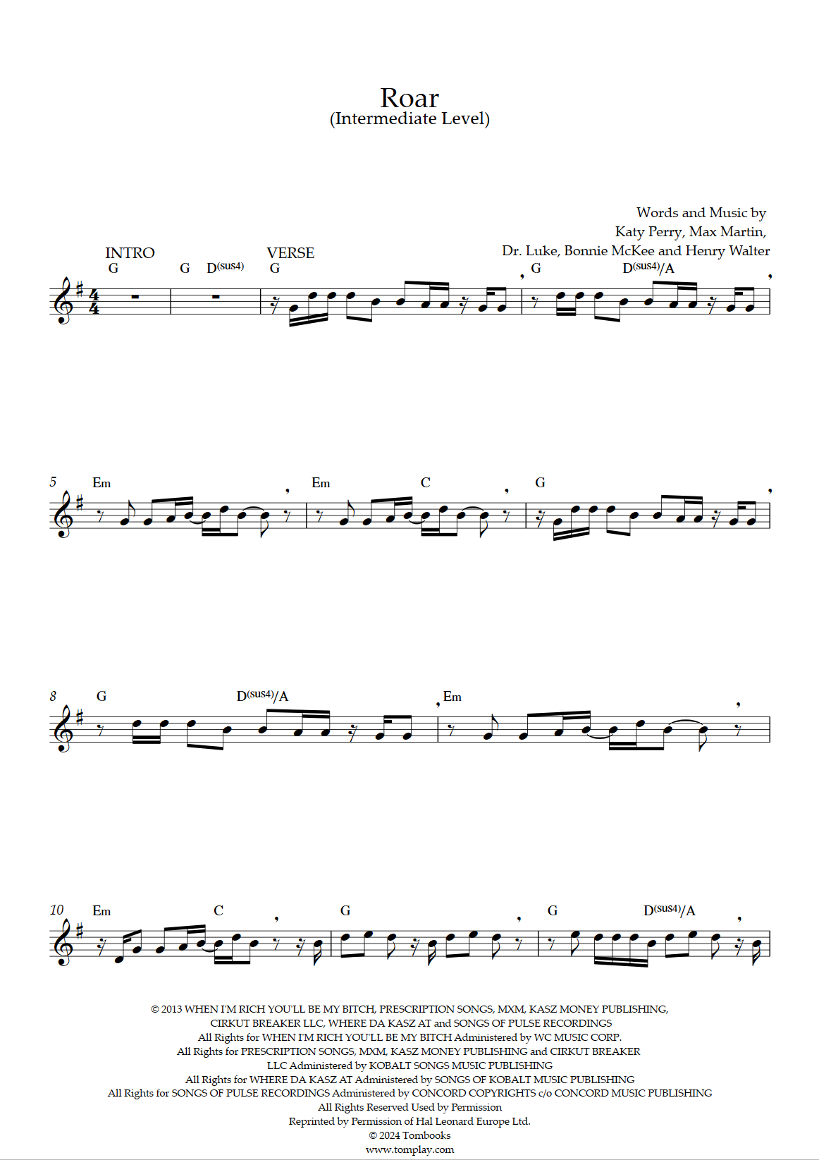 Katy Perry Roar Sheet Music Pdf Free Score Download