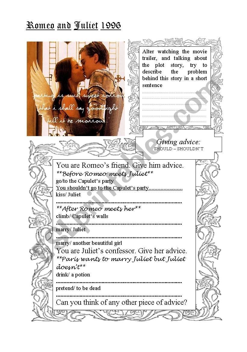 Romeo And Juliet 1996 Giving Advice ESL Worksheet By Carinita Worksheets Library