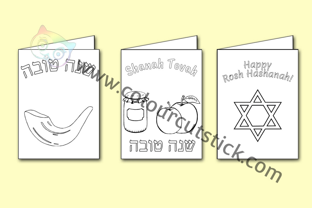FREE Rosh Hashanah Greetings Cards Vertical Colouring Coloring Pack Colour Cut Stick FREE Colouring Activities