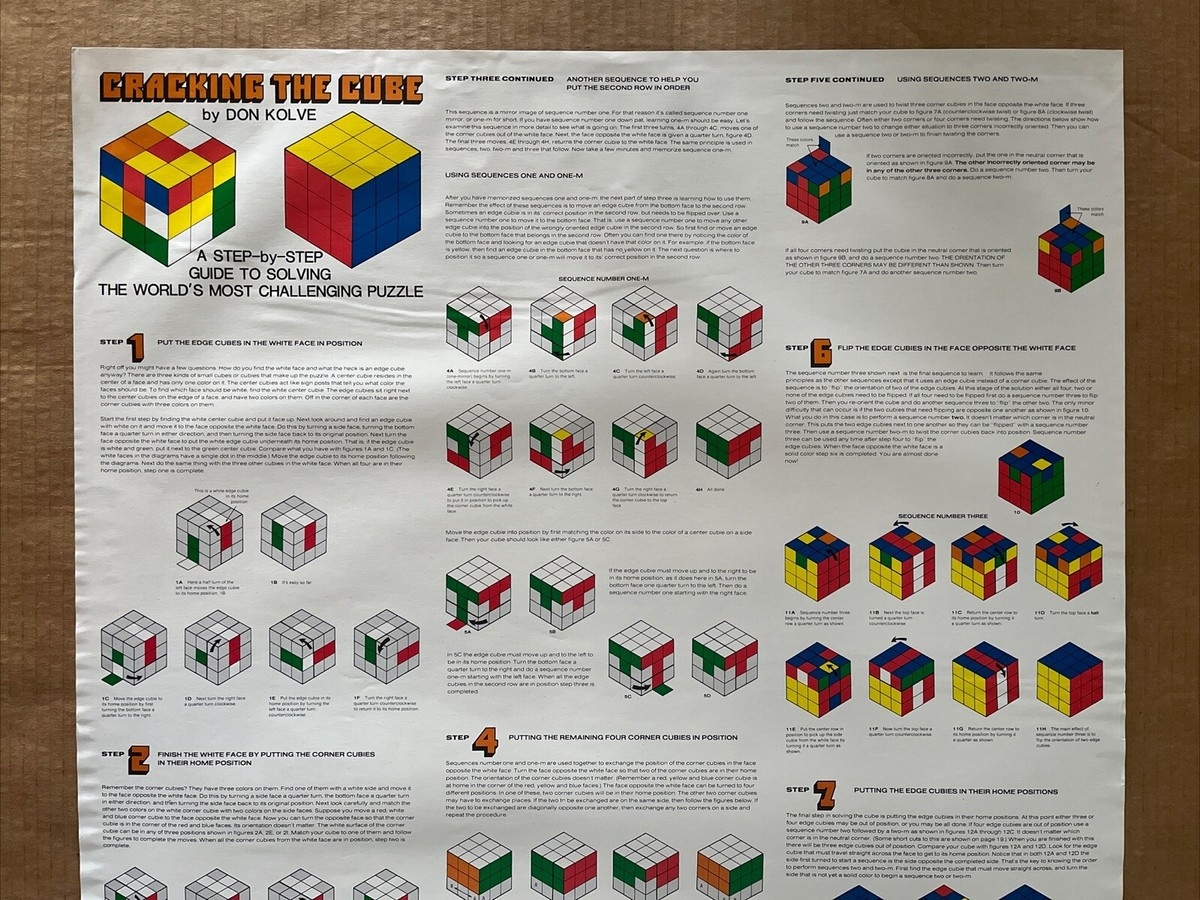 Vintage Original 1970s Guide To Cracking The Rubik s Cube Poster Don Kolve EBay