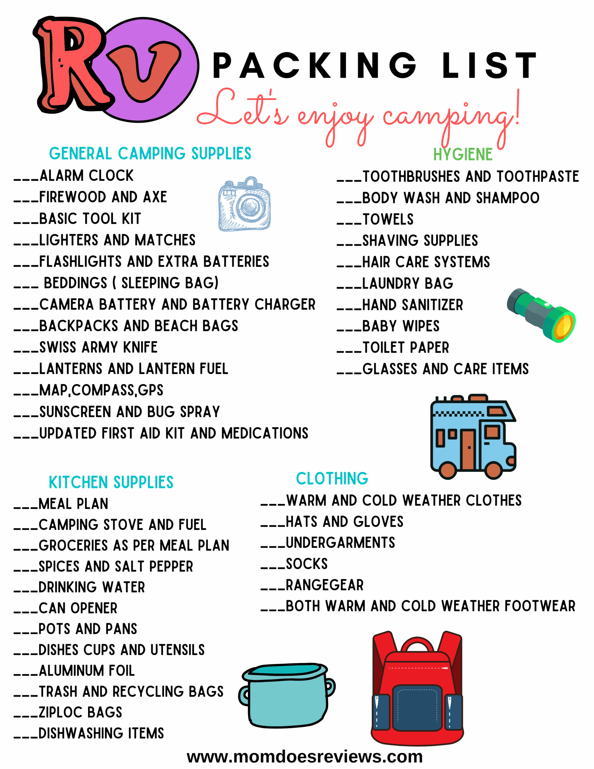 Camping 101 Printable RV U0026 Camping Packing List Mom Does Reviews