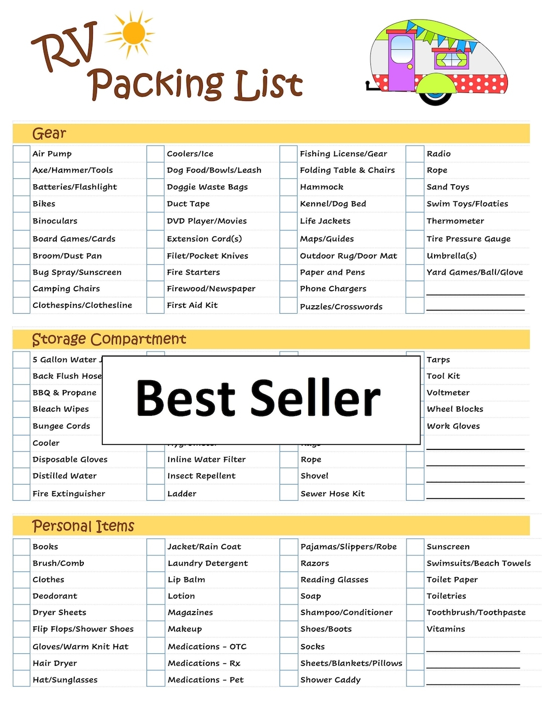 Ultimate RV Packing List Checklist Digital Download Printable Never Forget Supplies Double Sided Make Packing A Stress Free Vacation Etsy