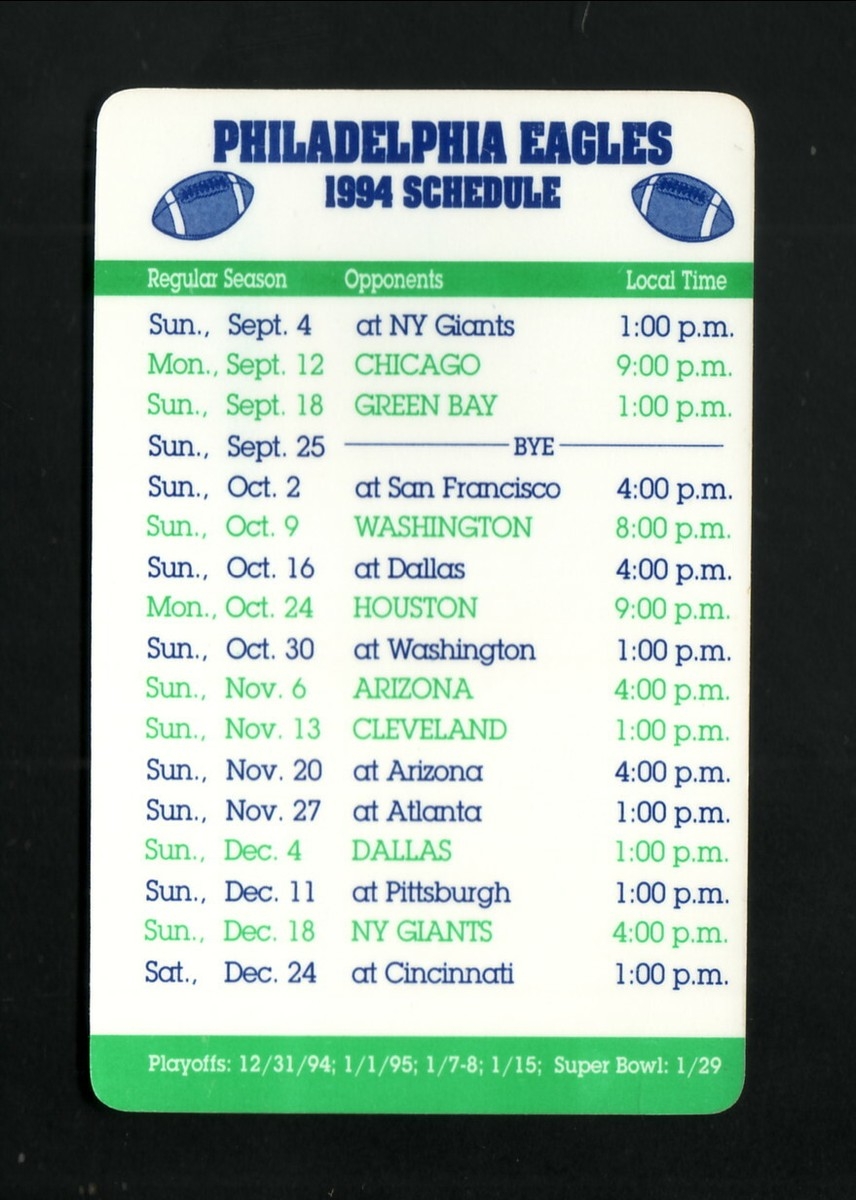 Philadelphia Eagles 1994 Pocket Schedule Wings To Go EBay