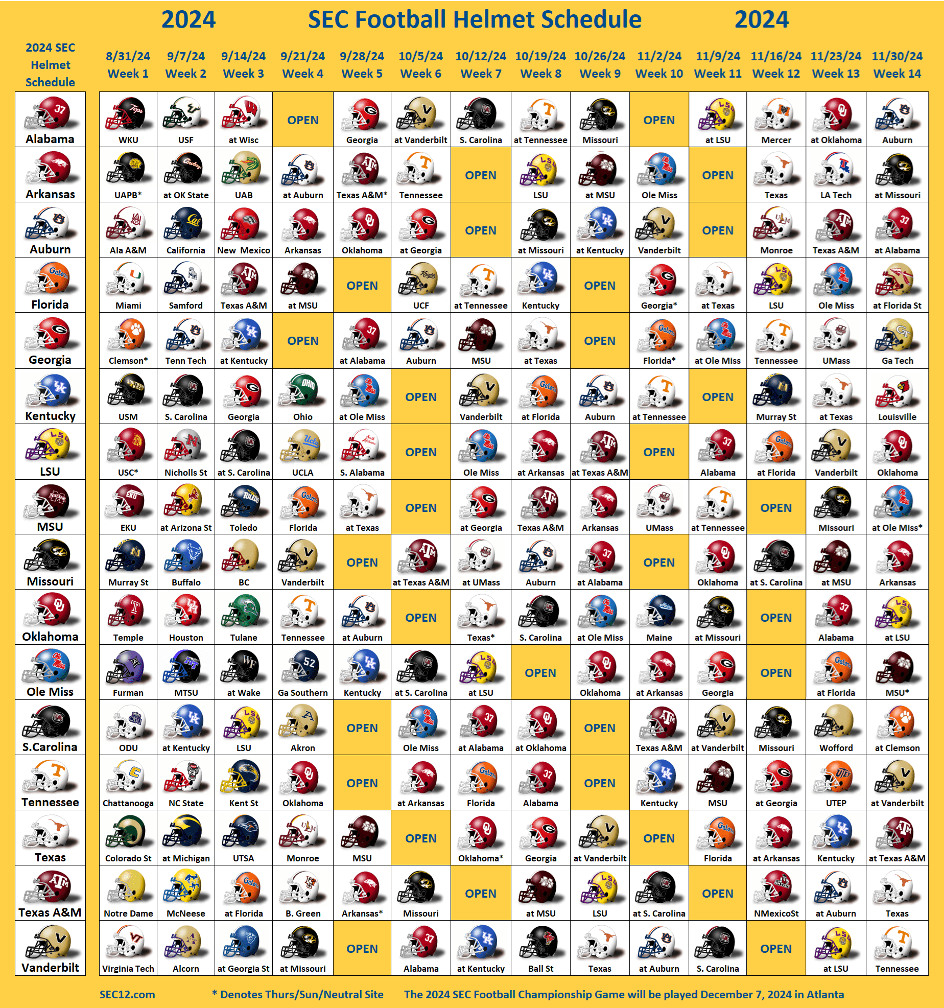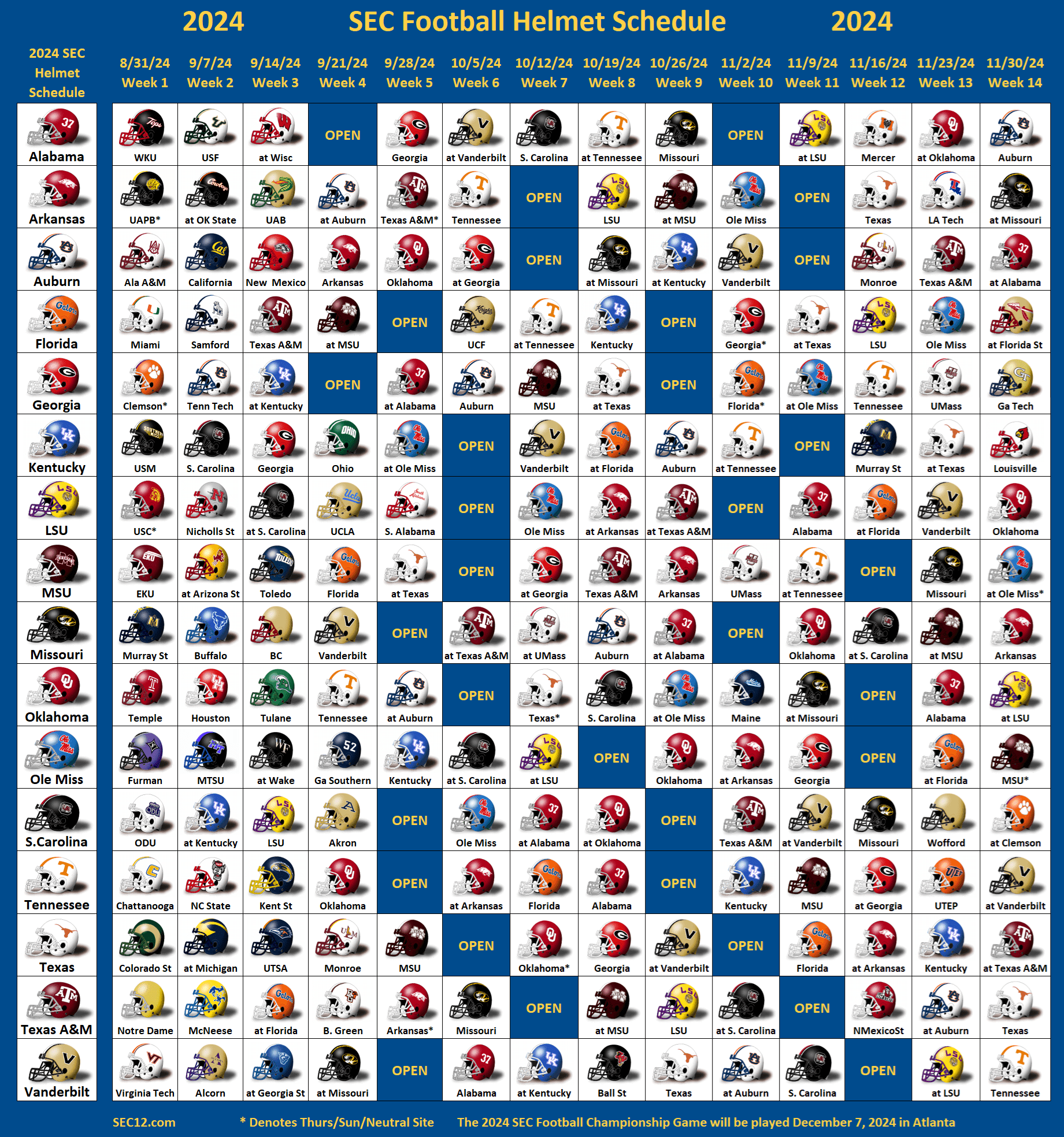 2024 SEC Football Helmet Schedule SEC12 SEC Football