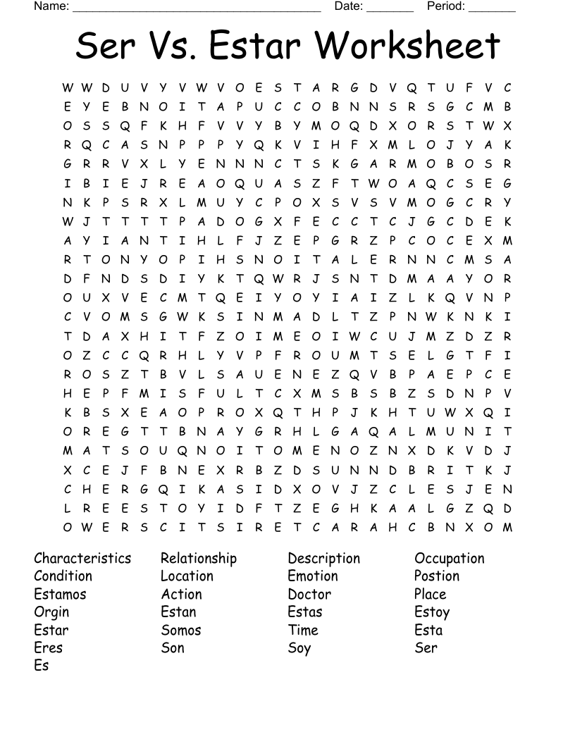 Ser Vs Estar Worksheet Word Search WordMint Worksheets Library