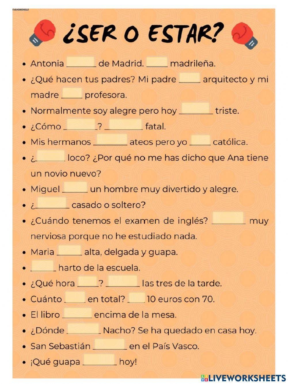 SER Vs ESTAR SraBaus Live Worksheets Worksheets Library