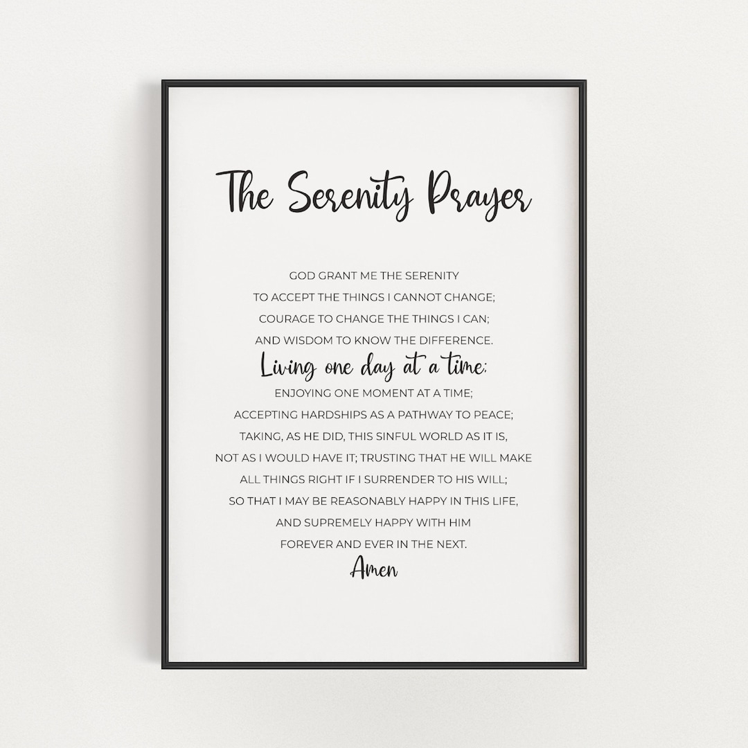 Printable Serenity Prayer Full Version By Reinhold Niebuhr Minimalist Typography Alcoholics Anonymous Sobriety Gift Addiction Recovery Art Etsy