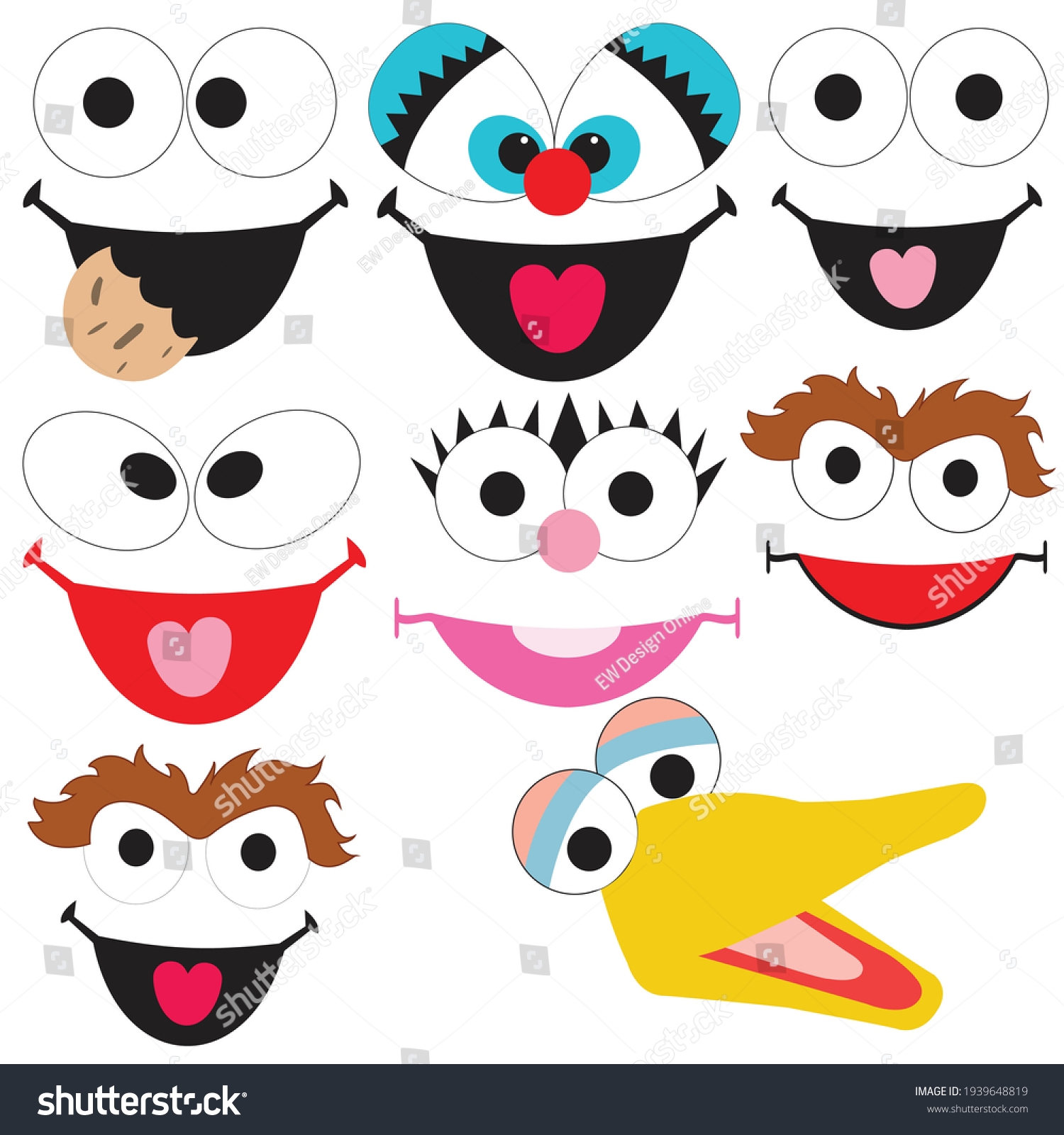 Vektor Stok Sesame Street Face Icon Pack Eyes Tanpa Royalti 1939648819 Shutterstock
