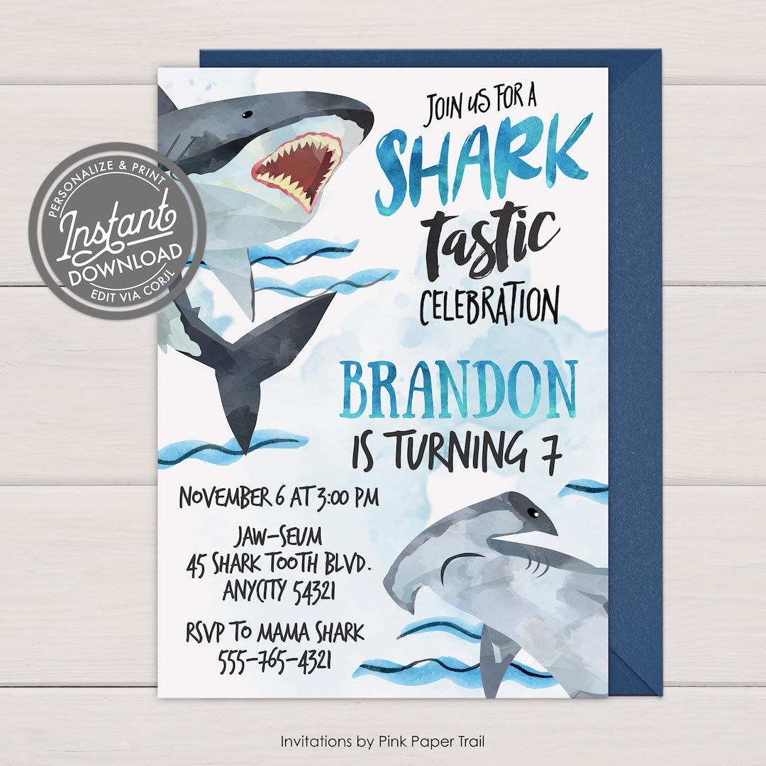EDITABLE Shark Invitation Shark Boy Birthday Invitation Shark Birthday Party Shark Party Baby Shark Printable Instant Access Invite Etsy