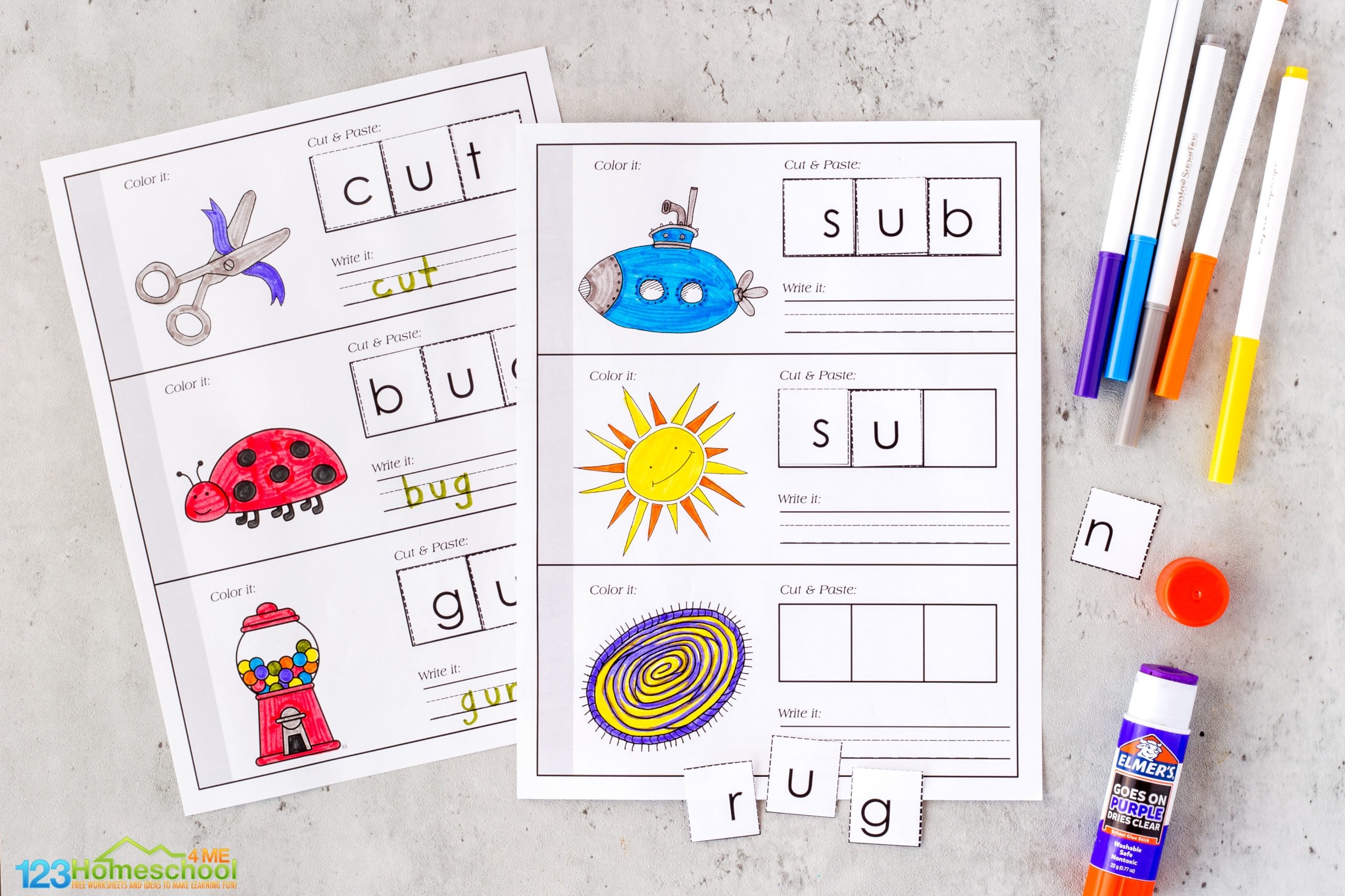 FREE Short U CVC Words Activity Cut And Paste Worksheets