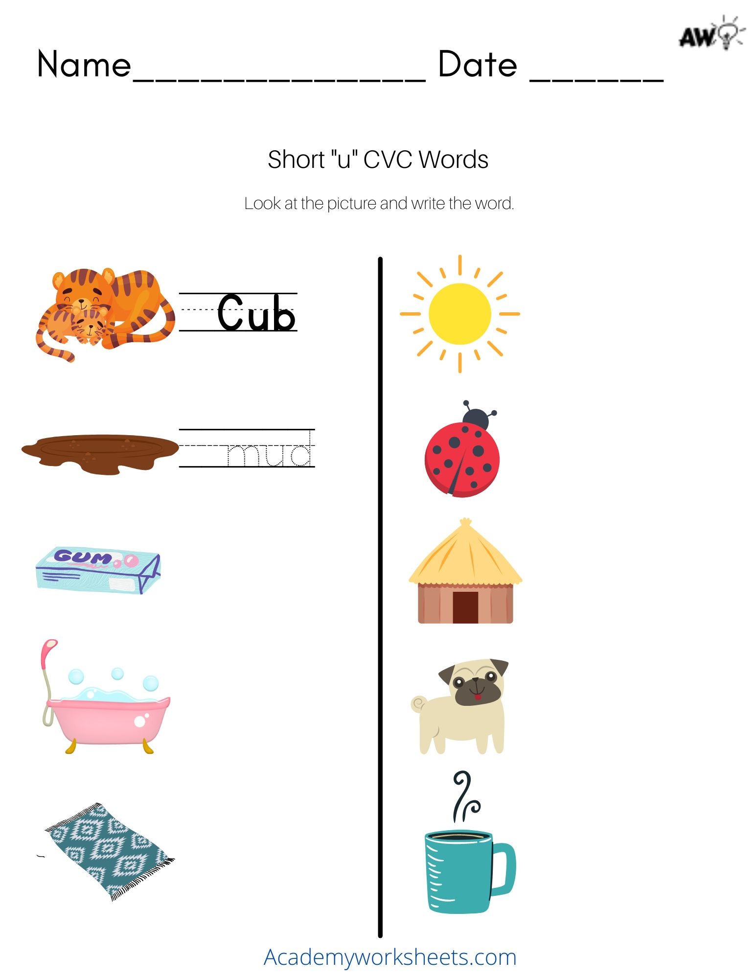 Short U Phonics Worksheets CVC Words Academy Worksheets Worksheets Library