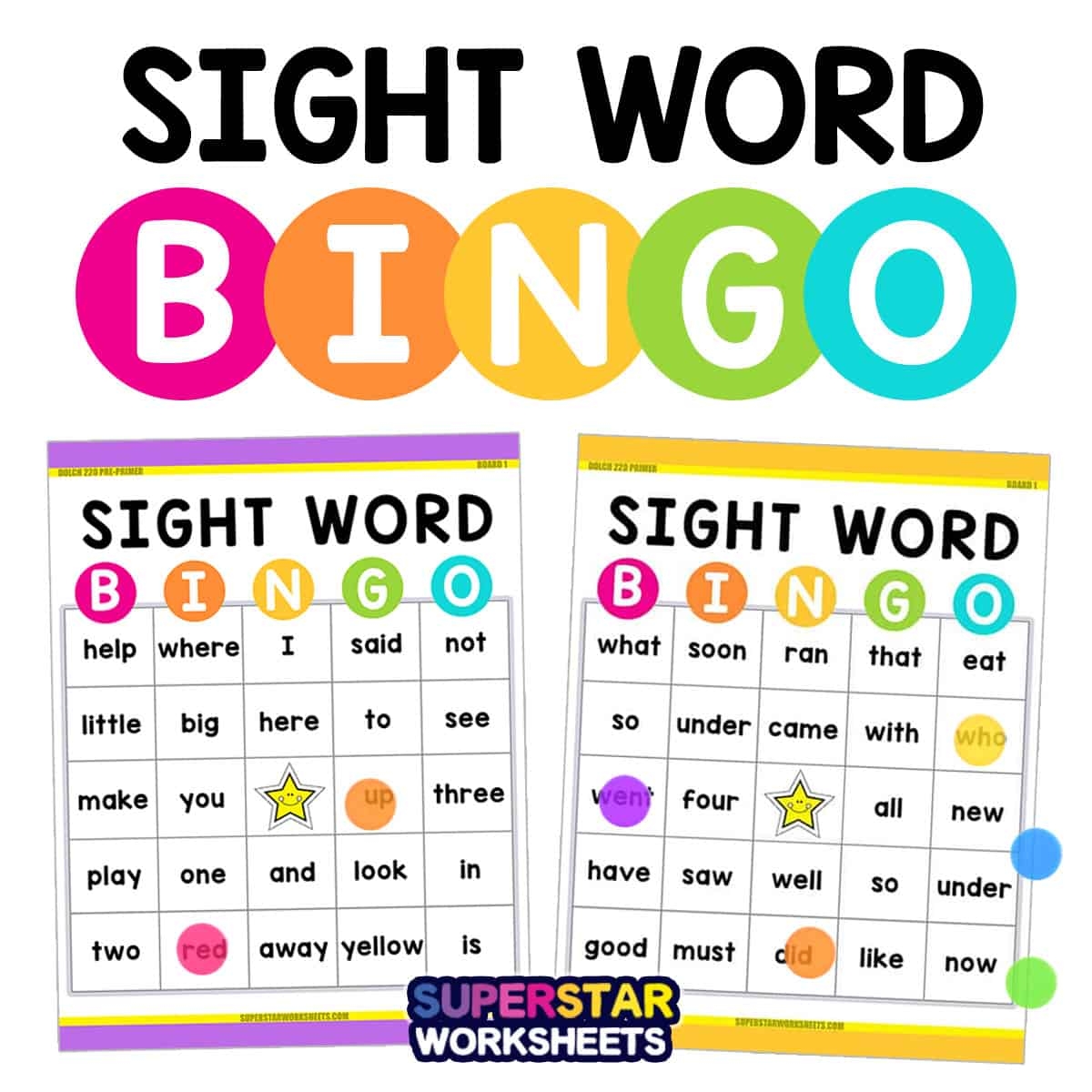 Sight Word BINGO Superstar Worksheets