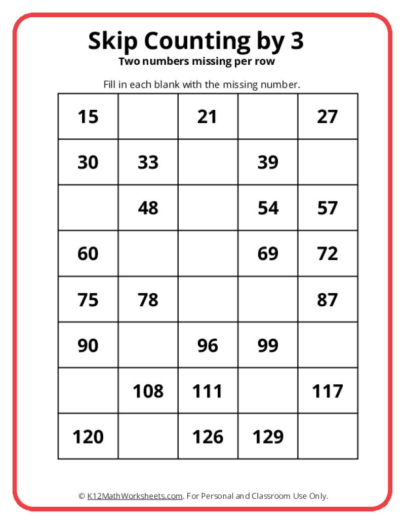 Help your child master skip counting by 3 with our printable worksheets. These resources are a great way to reinforce this important math skill while keeping your child entertained. Download them today and make math practice a breeze!