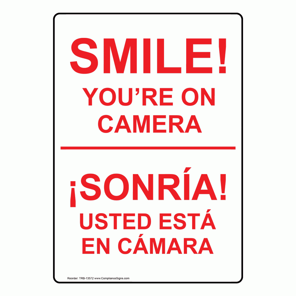 English Spanish Vertical Sign Smile You re On Camera Made In USA