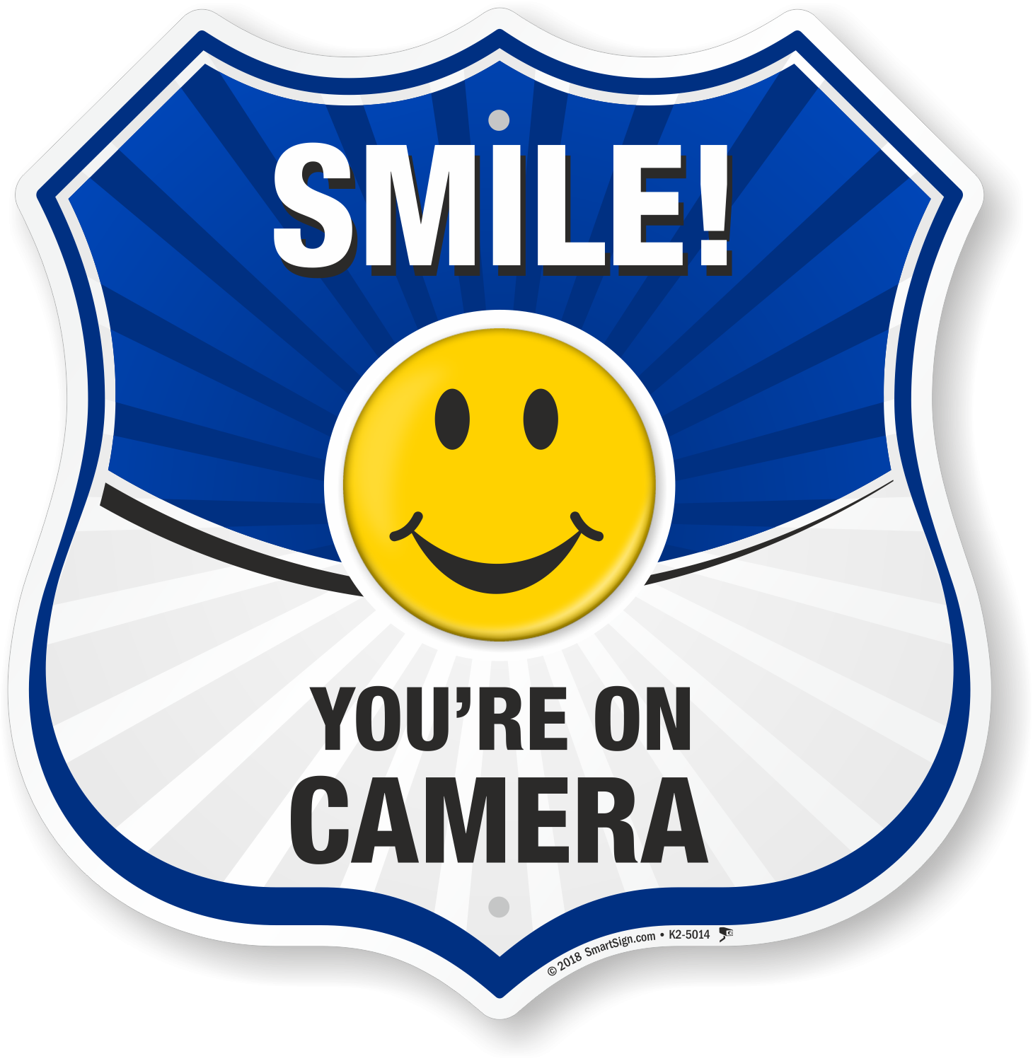 Smile You Are On Camera Sign Shield Shape SKU K2 5014