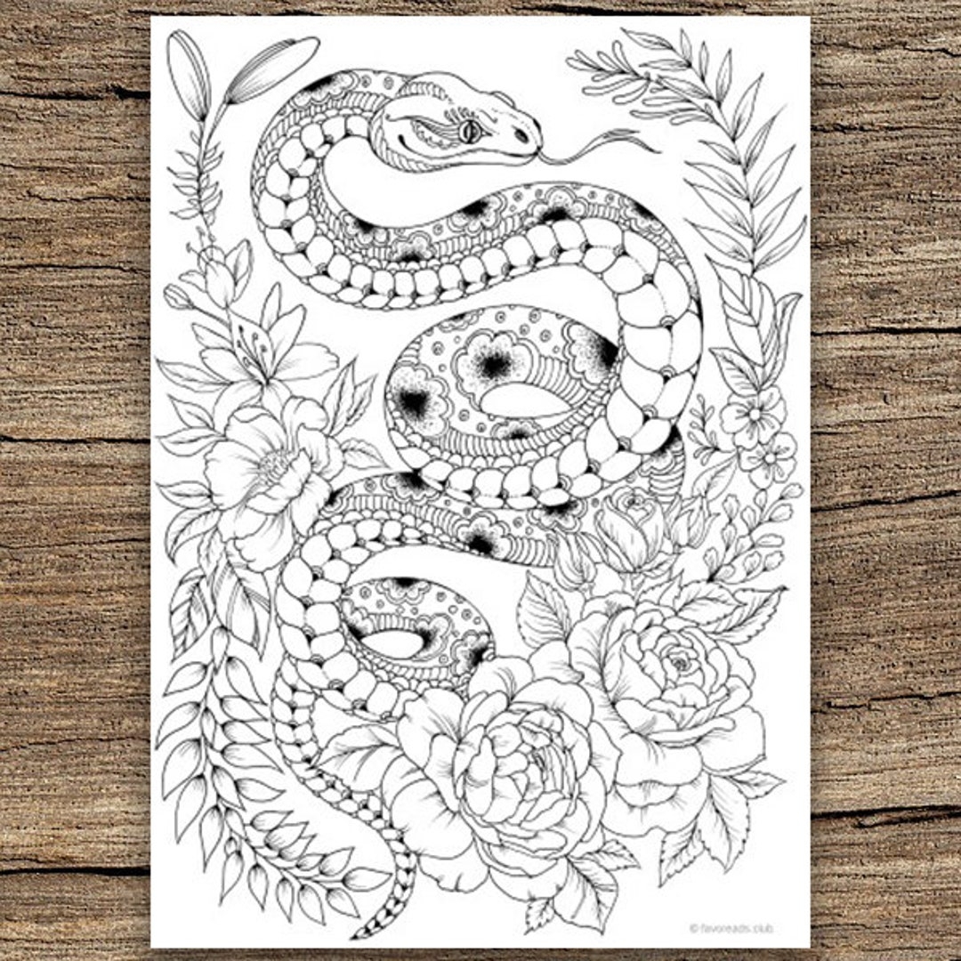 Snake Printable Adult Coloring Page From Favoreads coloring Book Pages For Adults And Kids Coloring Sheets Colouring Designs Etsy