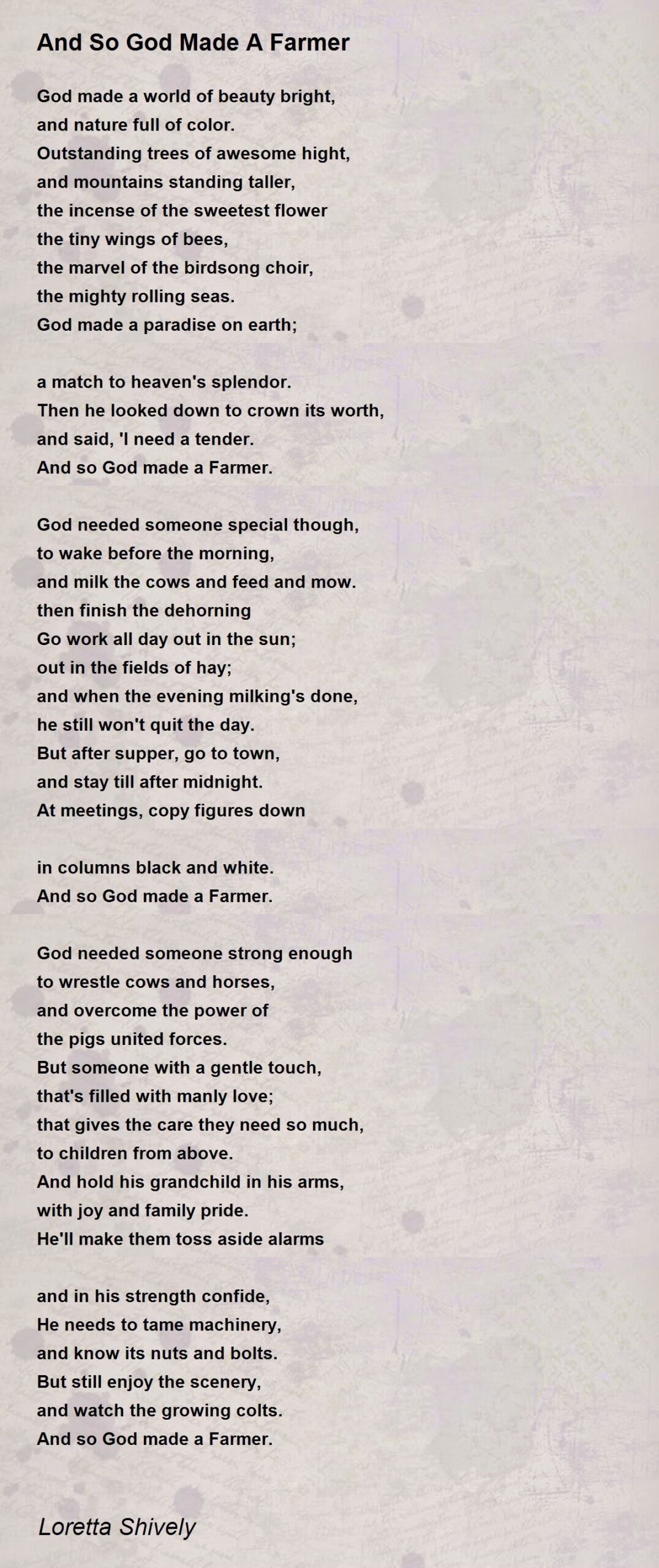 And So God Made A Farmer And So God Made A Farmer Poem By