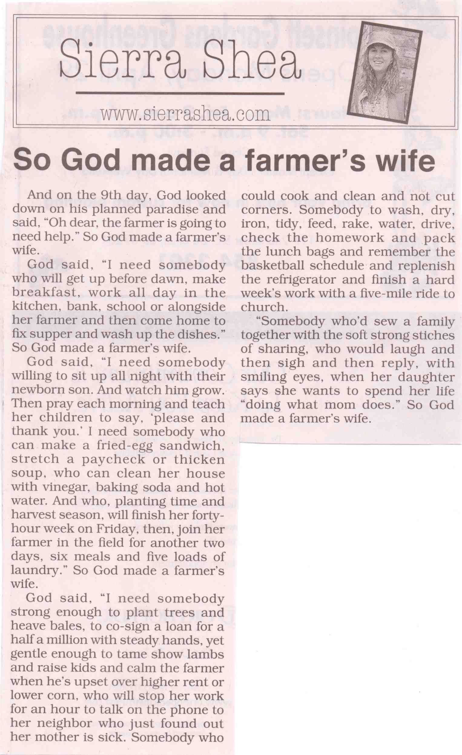 Poem 1 So God Made A Farmer s Wife Sierra Shea