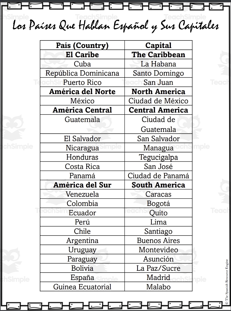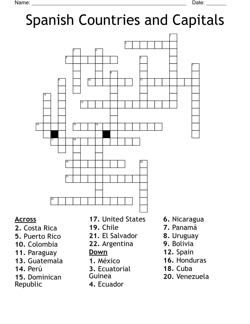 Spanish Speaking Countries And Capitals Worksheet WordMint