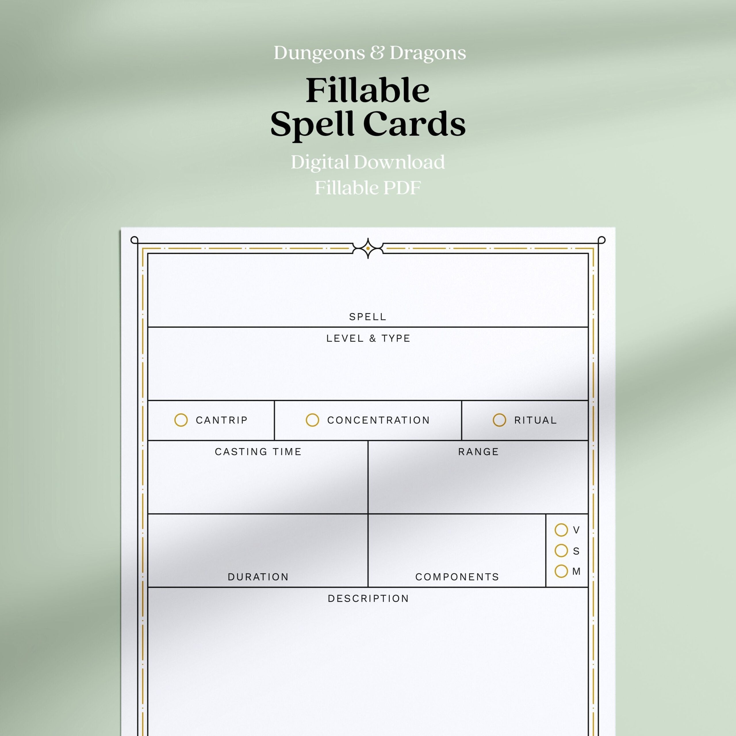 Printable Spell Cards Dnd 5e PDF Fillable Digital Download Dungeons And Dragons Etsy