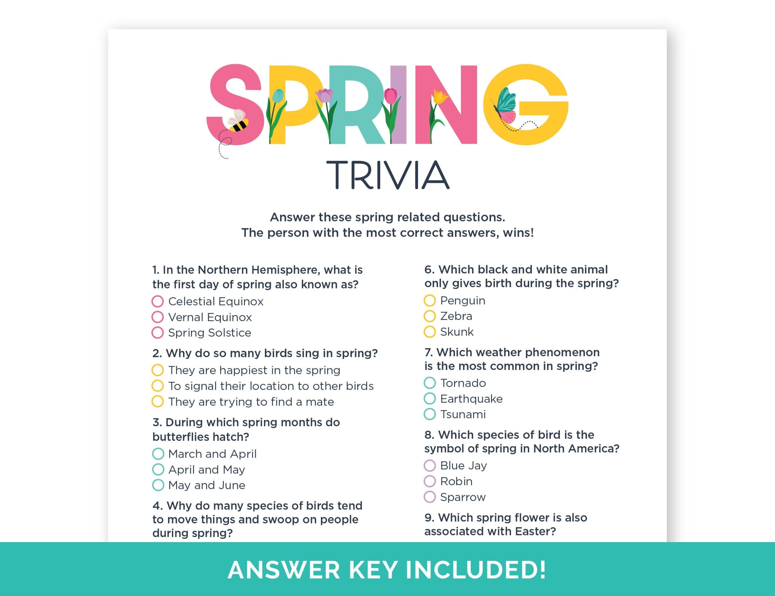 As the weather warms up and flowers start to bloom, it’s the perfect time to test your knowledge with some spring trivia questions and answers printable. Whether you’re hosting a virtual trivia night with friends or looking for a fun way to pass the time, these questions are sure to entertain and challenge you.