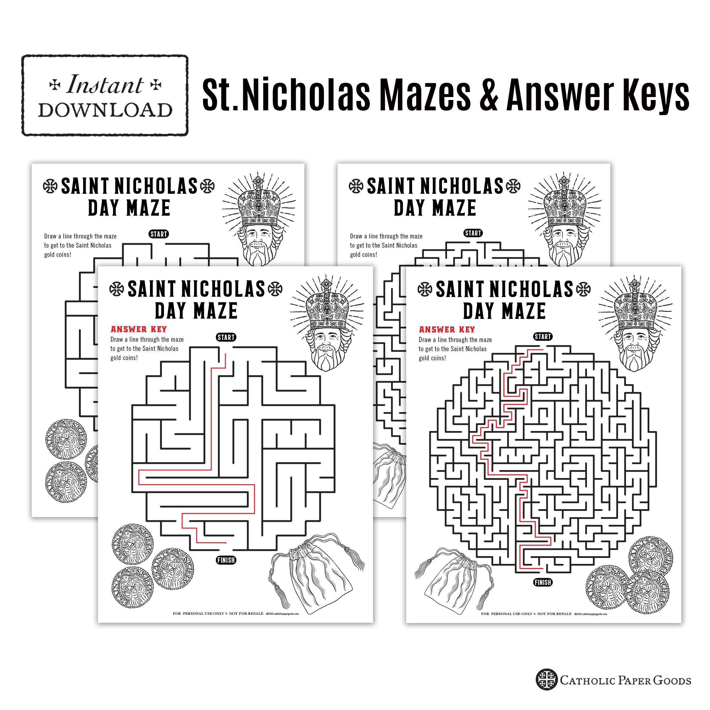 Saint Nicholas Day Activity Bundle Catholic Coloring Pages Printable Maze Games U0026 Answer Key Printable Maze St Nicholas Miter Craft