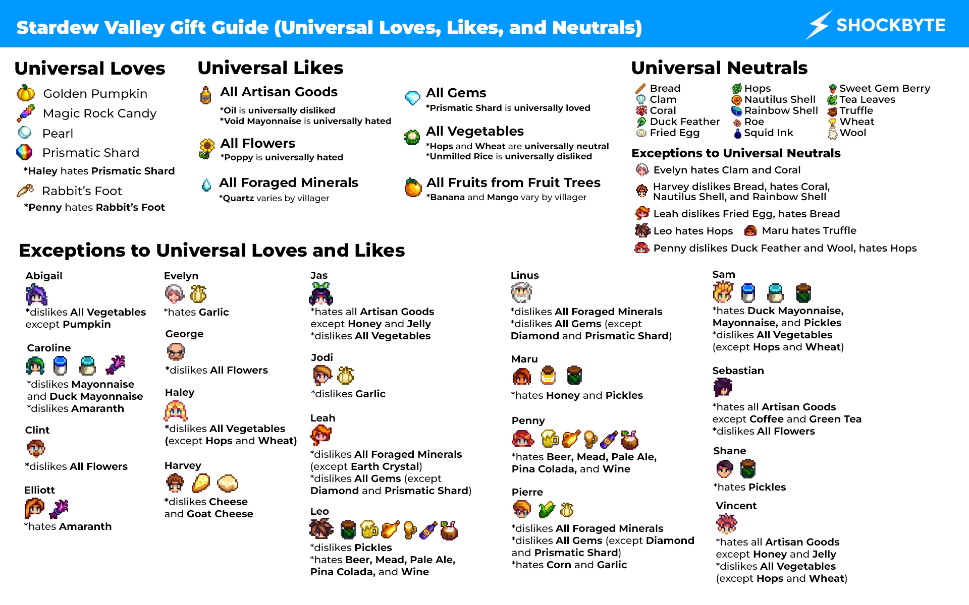 Loved Gifts In Stardew Valley A Visual Guide Wickedy